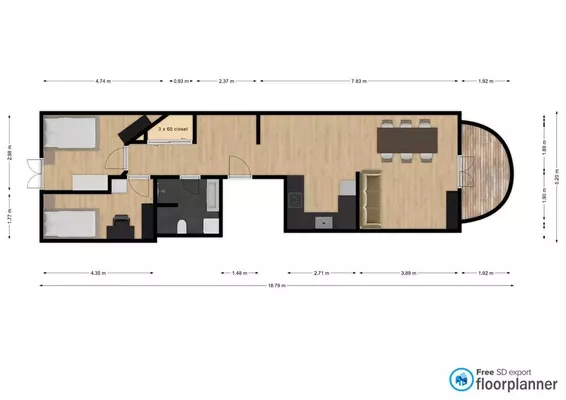 3 vær. lejlighed på 60 m²