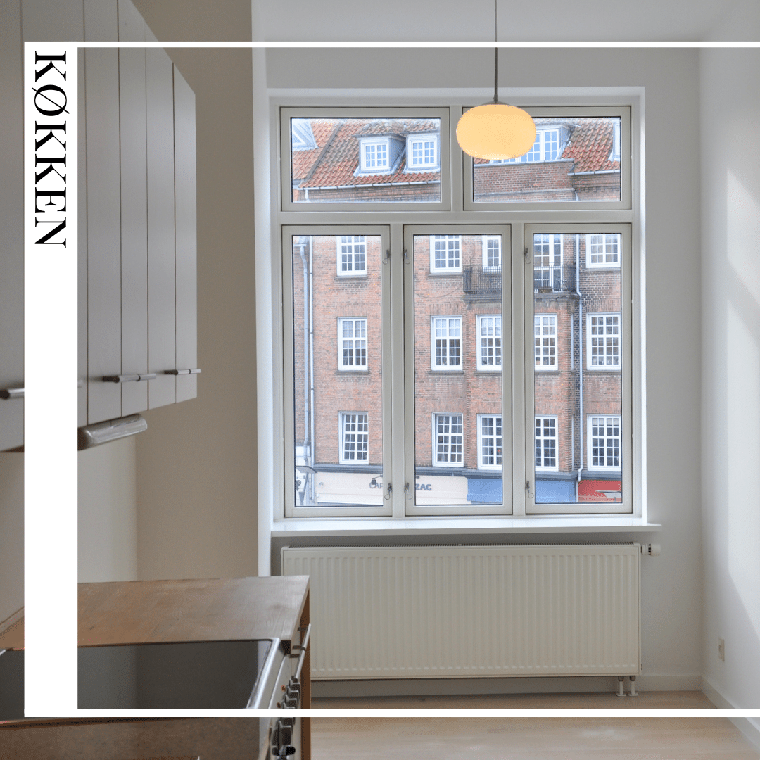 Lejligheden har fået isat nye lavenergivinduer i 2021, hvor vinduerne mod vejen er lydisolerende, der sikrer en skøn ro i lejligheden.