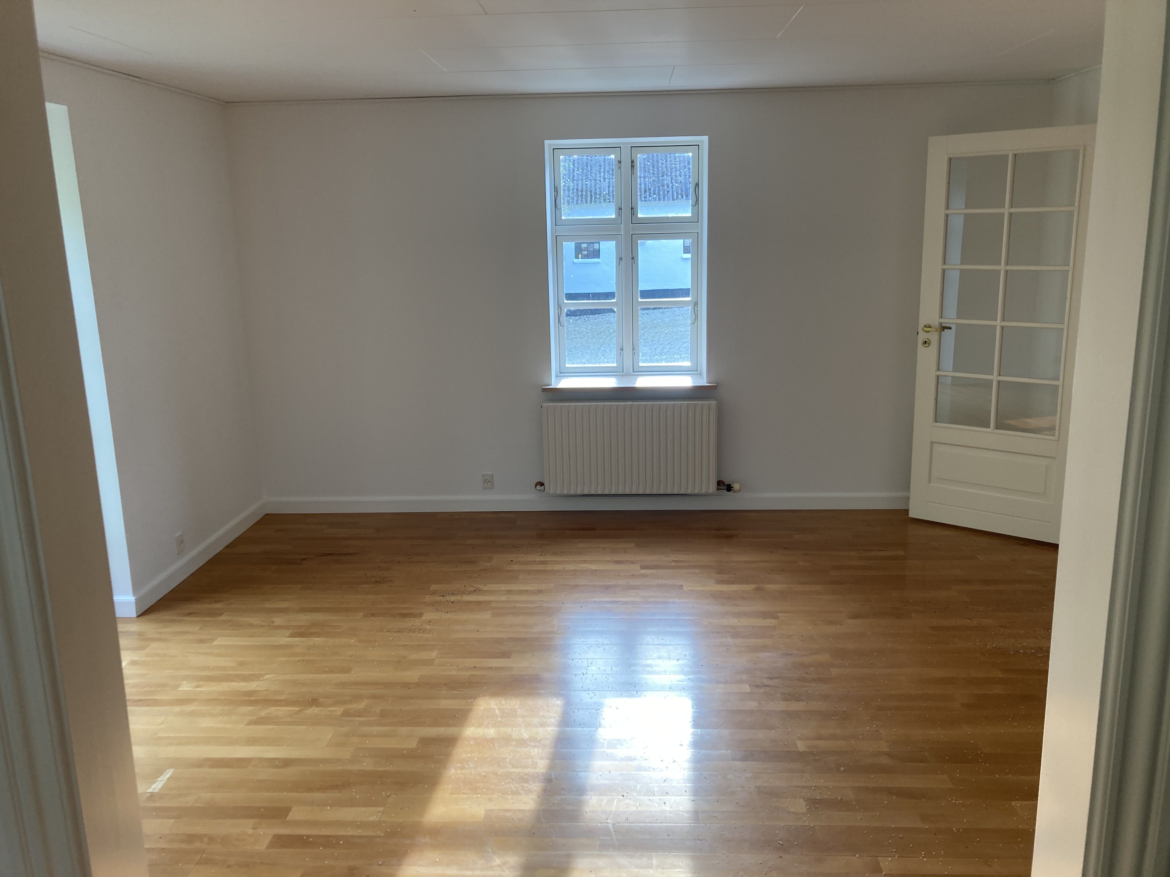 Resten af lejligheden har flotte lamelgulve og gulvvarme.