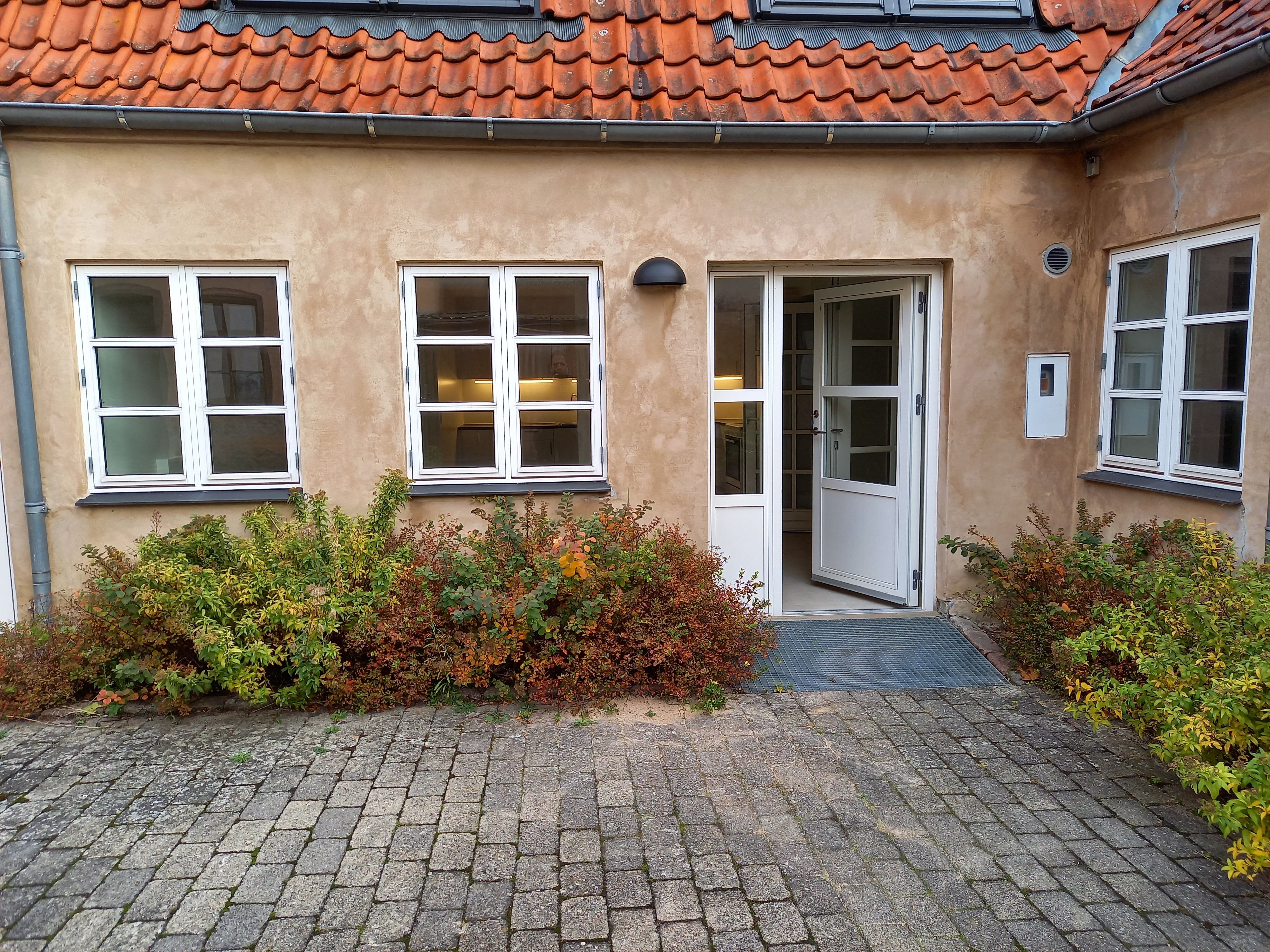 Lejemålet ligger tilbagetrukket med dejlig lille fælles gård, hvor man også har udhus til opbevaring.