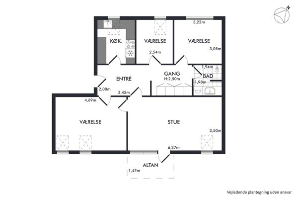Hyggelig 3 værelses lejlighed.