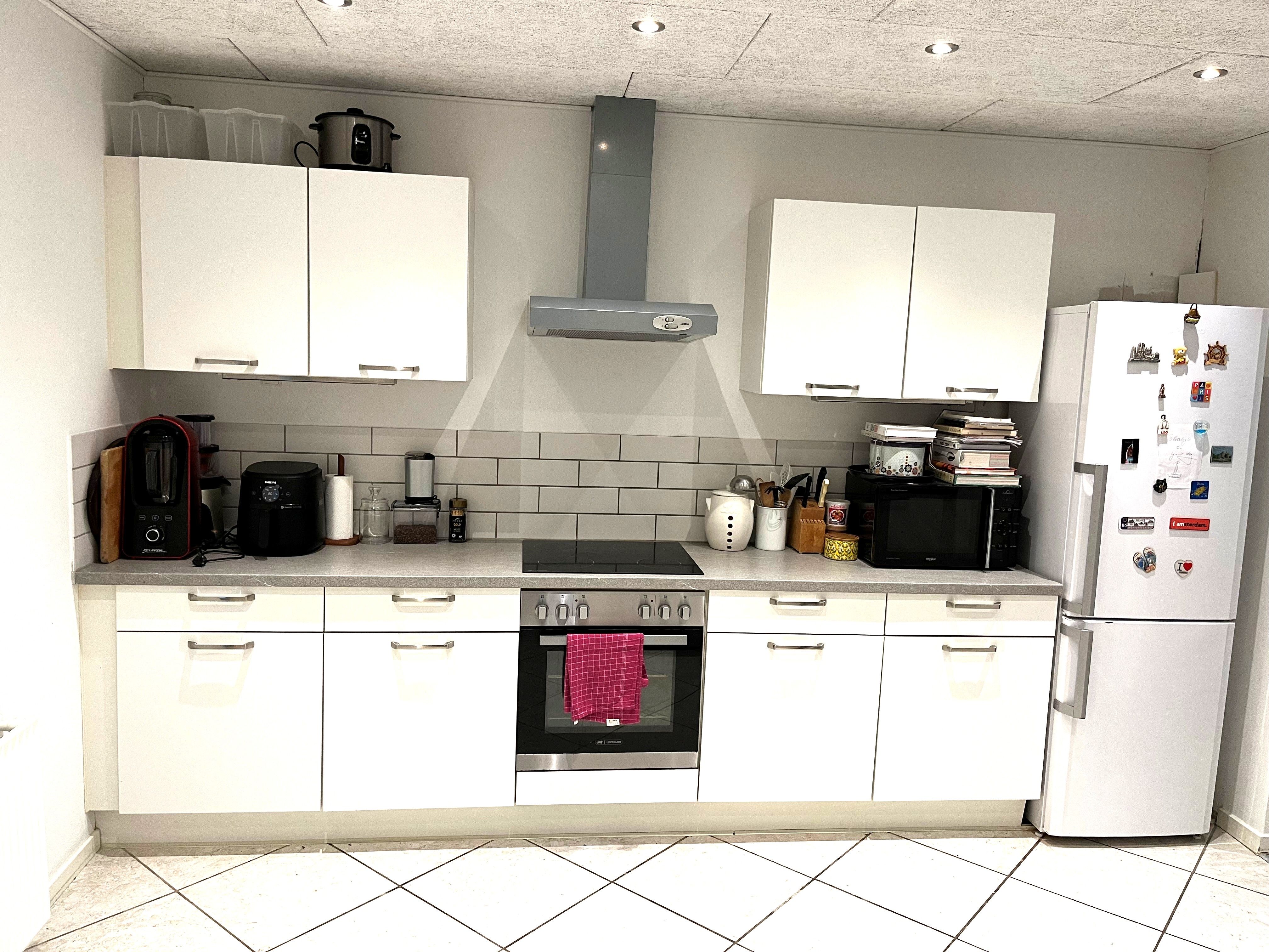 Her får du entré med plads til overtøjet, flot hvidt køkken med masser af skabsplads i åben forbindelse med den store regulære og lyse stue. Der er et fint lysindfald i stuen fra det store vinduesparti. Og alt i hårde hvidevarer i køkkenet. Godt badeværelse med håndvask nedfældet i bordplade med underskabe samt flisebelagt bruseniche.
