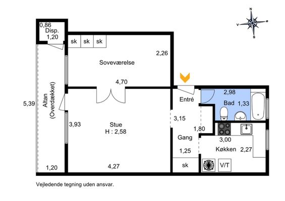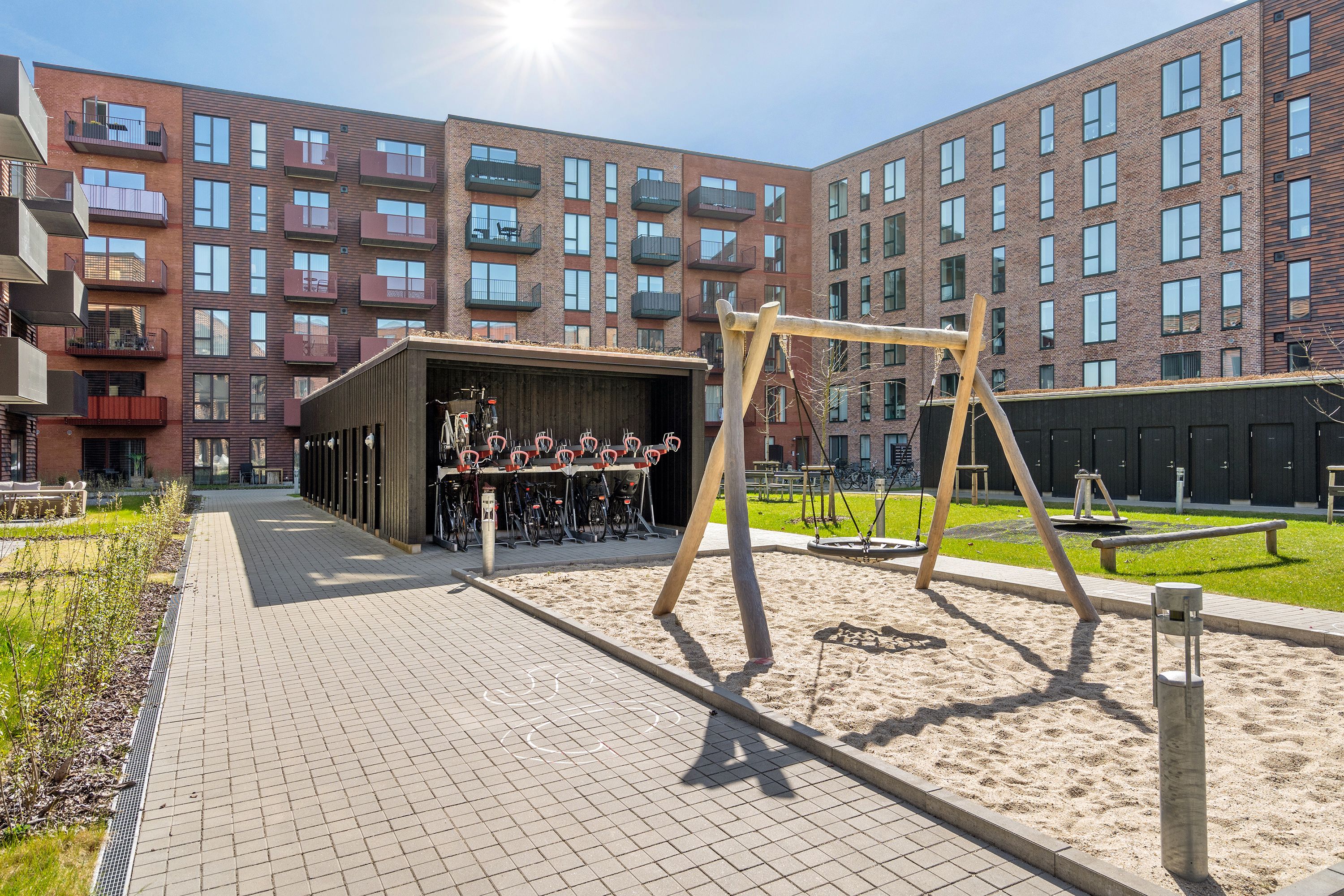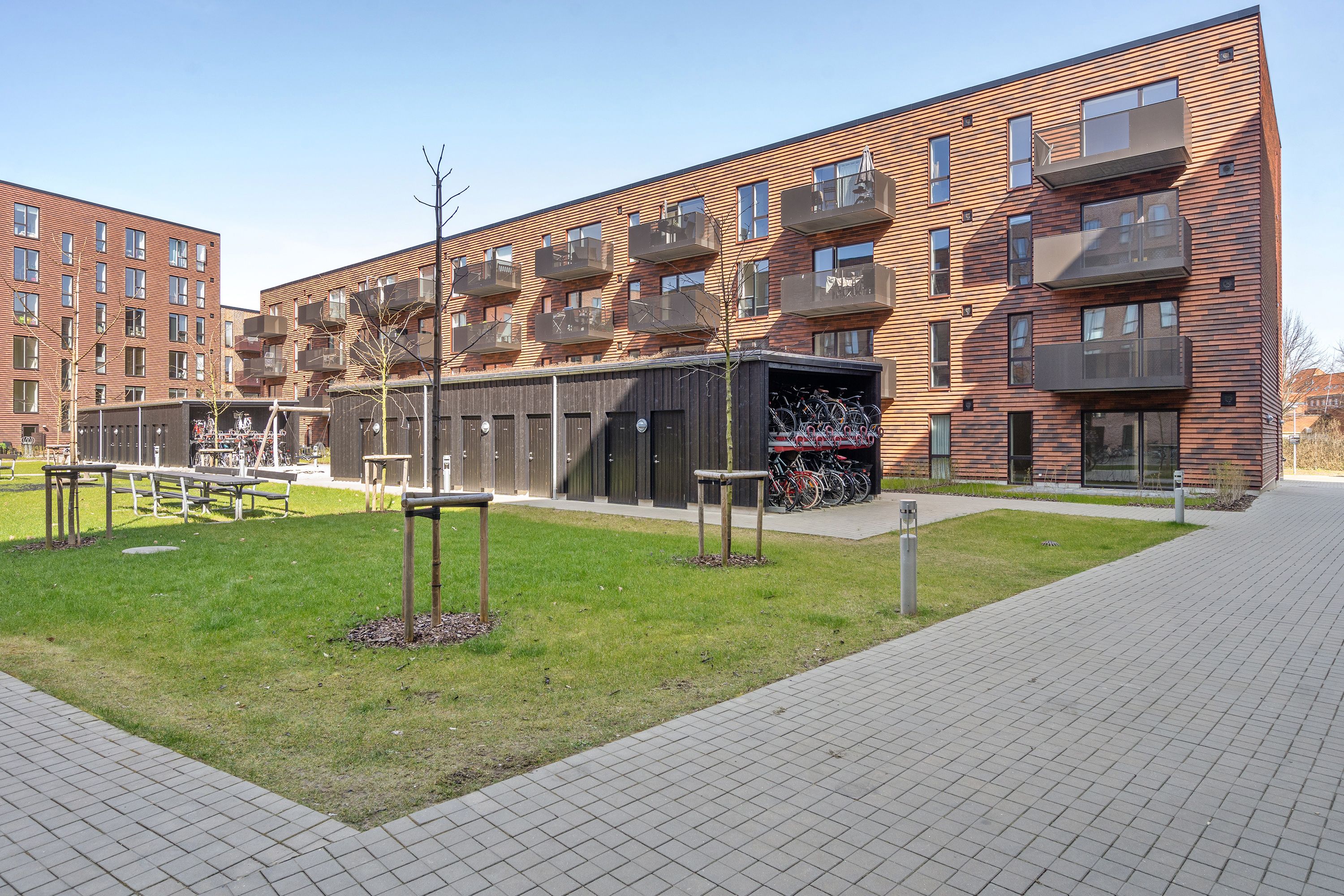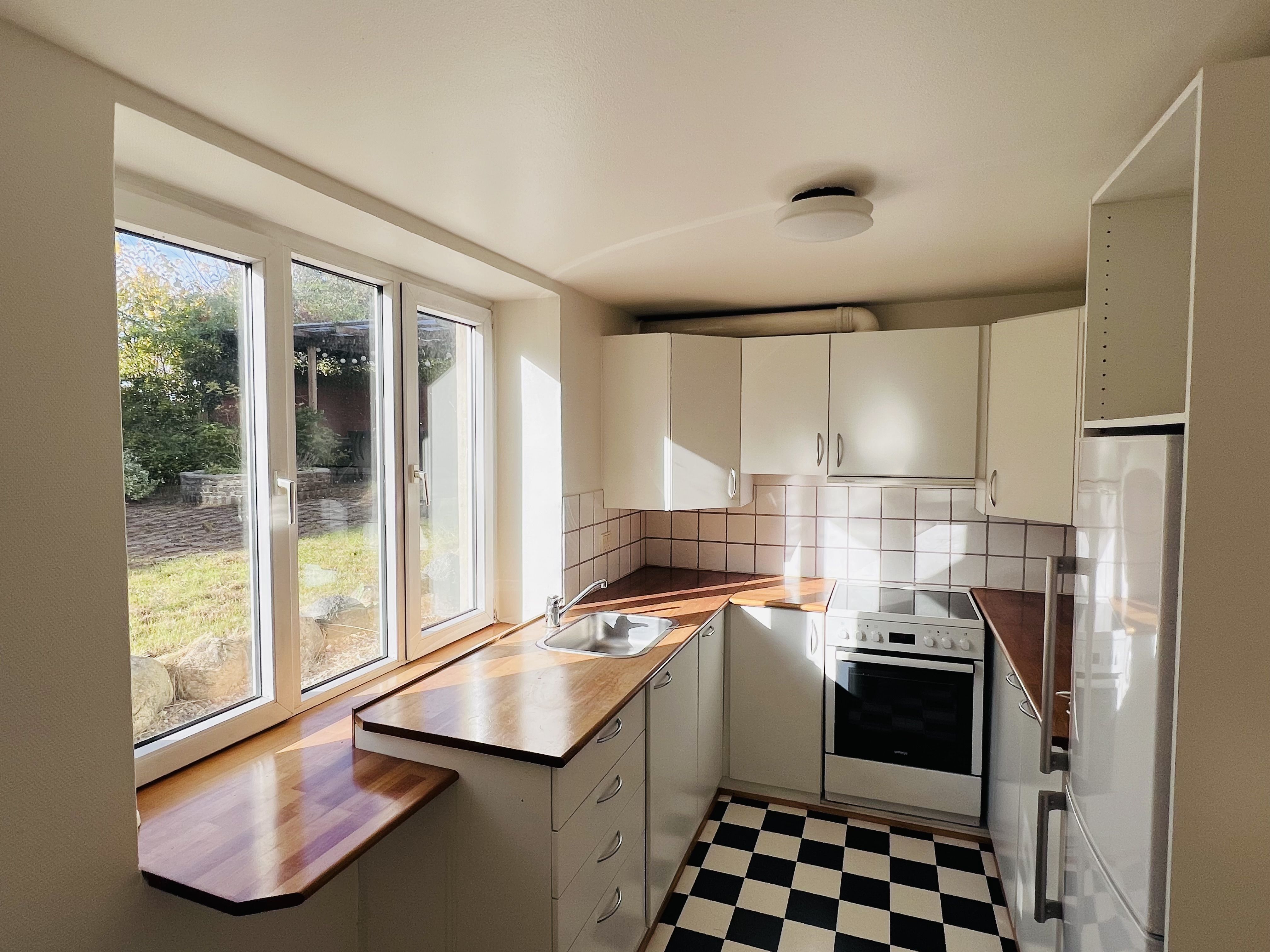 2-værelses lejlighed på 62 m2 med stål hårde hvidevarer, opvaskemaskine, vaskemaskine og tørretumbler. Fra værelse er der udgang til egen terrasse. Lyst inventar og lyse trægulve/fliser med varme i gulv på badeværelse. Lejemålet ligger tæt på supermarked.