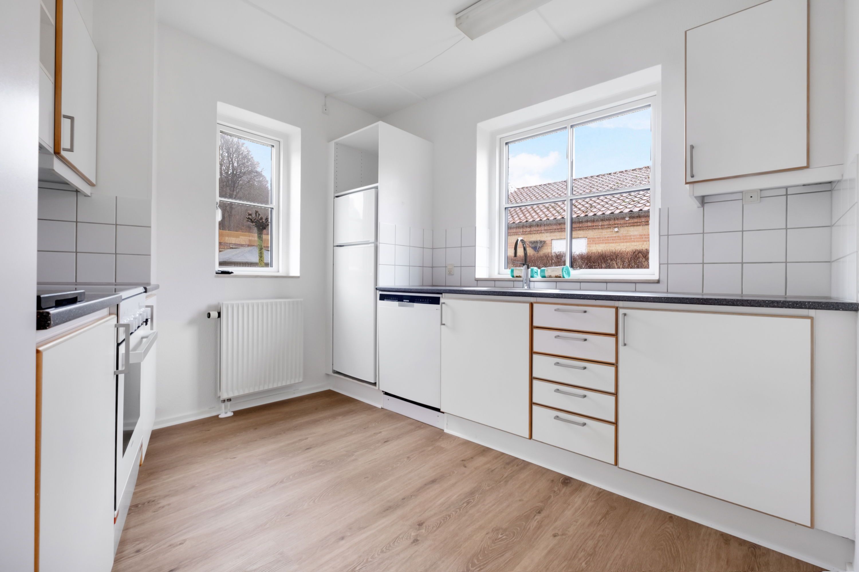 \- Moderne boliger i centrum af Vejle \- Midt i smørhullet af Vejle Yderste centralt i Vejle finder vi hjørnet Vedelsgade/Tønnesgade. Vedelsgade 34 er klassisk treetages rødstensbygning på tre etager med tegltag og hvide vinduer fra 1926. Hele herligheden fik et løft i 2004, så boligerne lever op til tidens standard. Tønnesgade er moderne treetages bygninger fra 2004, som er holdt i skiftevis røde og gule facader med grå vinduespartier. Parkering foregår med registrering af beboerne nummerplade ved indflytning. Lejer har cykel/knallertskur, bordebænkesæt, grillplads og mulighed for boldspil. Boligerne i Tønnesgade \- Moderne boliger med god planløsning Praktisk indrettede boliger med gulve uden dørtrin belagt med bøgeparket. Køkkenelementerne er i hvid melamin og enkelte har vinylgulve. Der er køle- fryseskab, komfur og emhætte med udsugningsanlæg. Køkkenet ligger i åben forbindelse med stuen, hvorfra der i 14 af to-rumsboligerne er udgang til en altan. Værelserne har faste skabe og det er muligt, efter ansøgning, at installere opvaskemaskine, vaskemaskine og kondenstørretumbler. Lejer afholder selv installation. På badeværelset er der praktisk vinyl på gulvet og lyse fliser i bruseafsnittet. Bortset fra i stueetagen er der en svalegang med plads til krukker og cafébord i den ene ende. Nærområdet Vejle vinder på point, når det gælder storslået natur og malerisk skønhed. Fjorden og de grønne skråninger kalder på oplevelser i det fri. I det nære finder vi både skoler, institutioner, sportsfaciliteter, biografer og teatre, dagligvare- og specialforretninger - alt sammen lige om hjørnet i gå- eller cykelafstand.