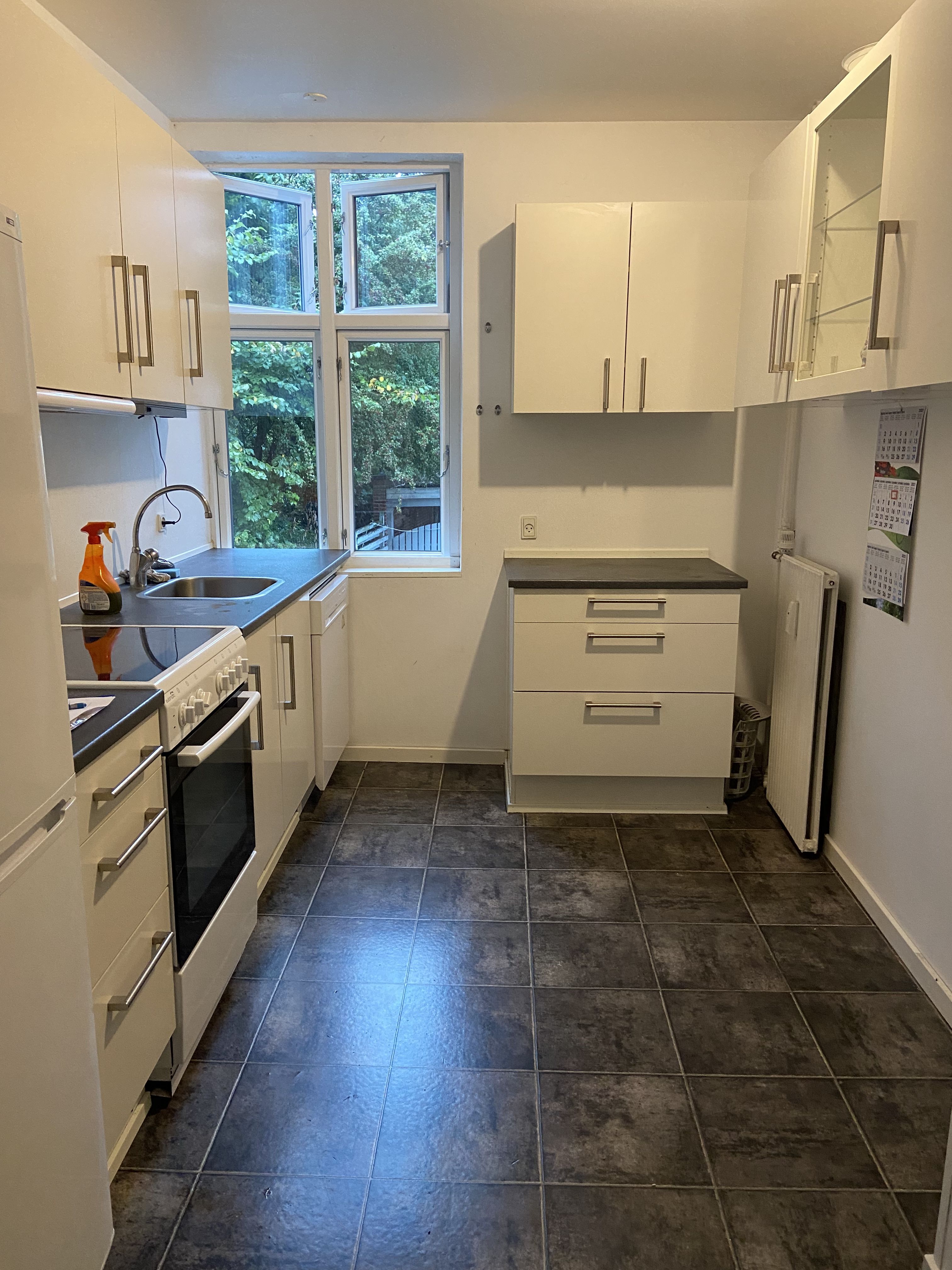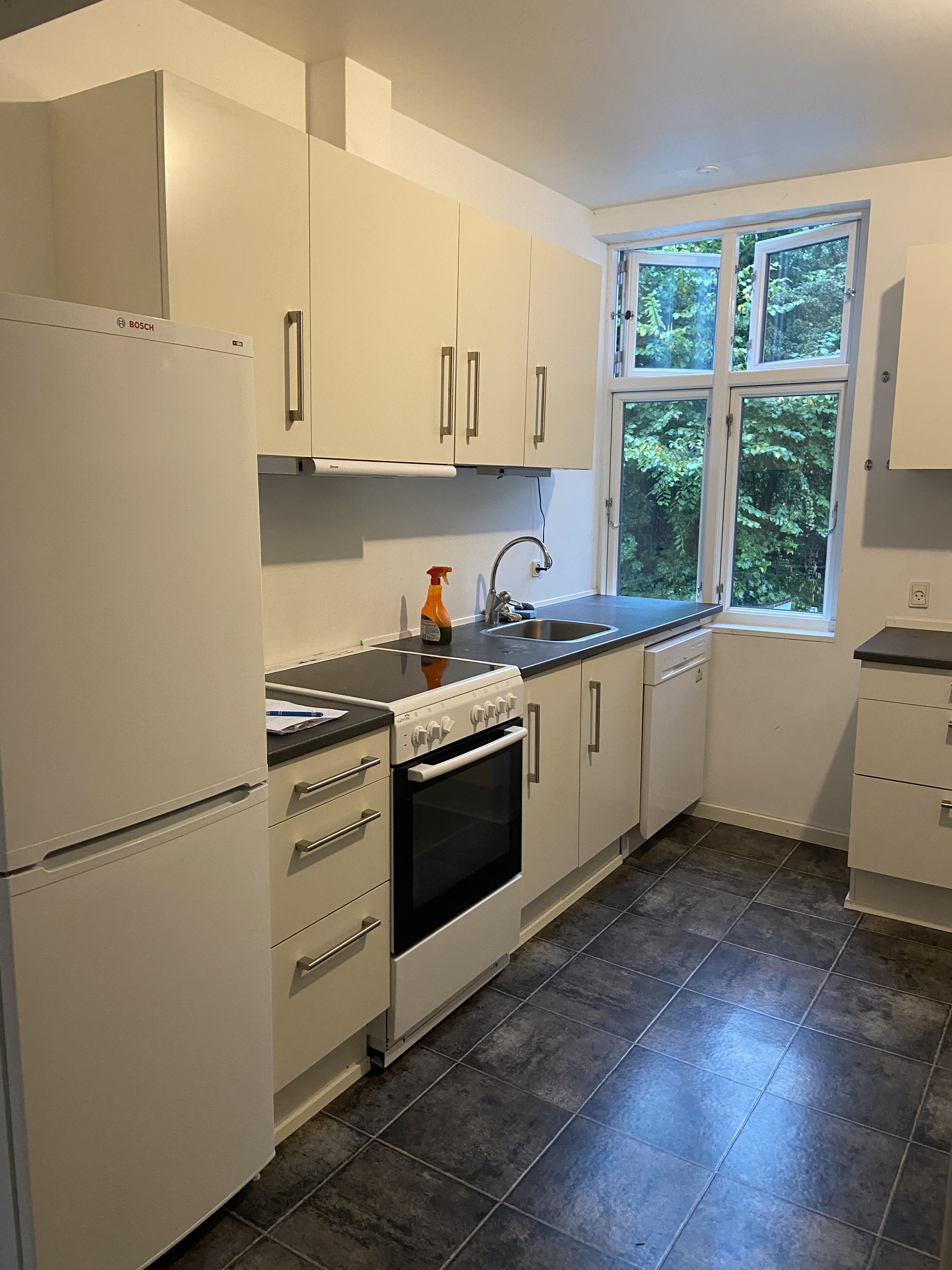 - Funktionelt køkken udstyret med opvaskemaskine og køle/fryseskab.