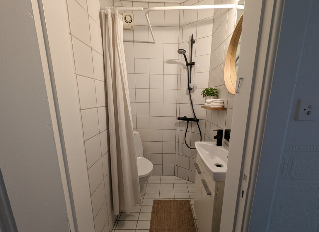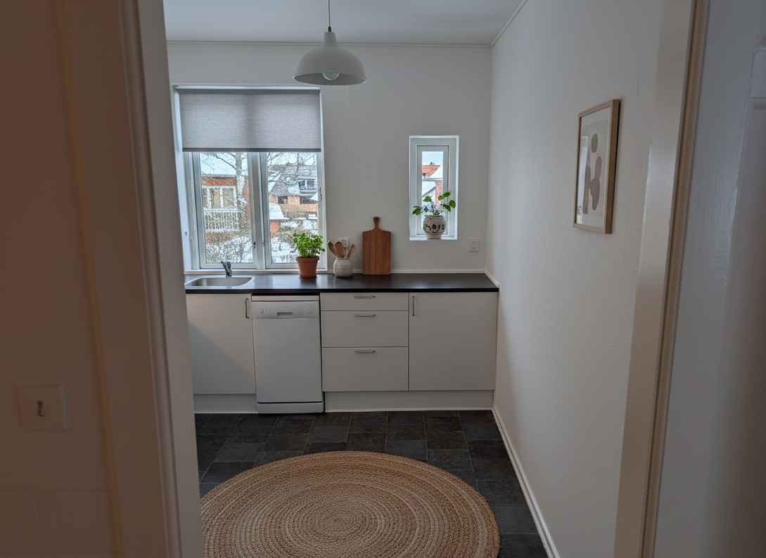 Lejligheden rummer en entre, et badeværelse, køkken med mulig spiseplads, en stue samt et værelse. Værelserne ligger separat, hvorfor den er ideel som delelejlighed. I entreen findes et garderobeskab og her er rig plads til yderligere opbevaring. Køkkenet er lyst og i god stand, og der er installeret opvaskemaskine. Som beboer i ejendommen, får du desuden råderet over et depotrum i kælderen. Der er fællesvaskeri i ejendommens kælder med både vaskemaskiner og tørretumbler. I baggården findes et fælles cykelskur og et flisebelagt fællesareal, hvorfra man kan nyde solen. Der forefindes parkeringspladser i ejendommens baggård, som er forbeholdt ejendommens beboere. Der tildeles 1 plads pr. lejlighed. Ejendommen er beliggende midt på Vesterbrogade, i kort afstand til Campus Vejle og midtbyen. Der er busstoppested lige foran ejendommen, hvilket gør det yderst nemt at benytte offentlig transport. Husdyr er ikke tilladt. Lejemålet overtages nymalet.