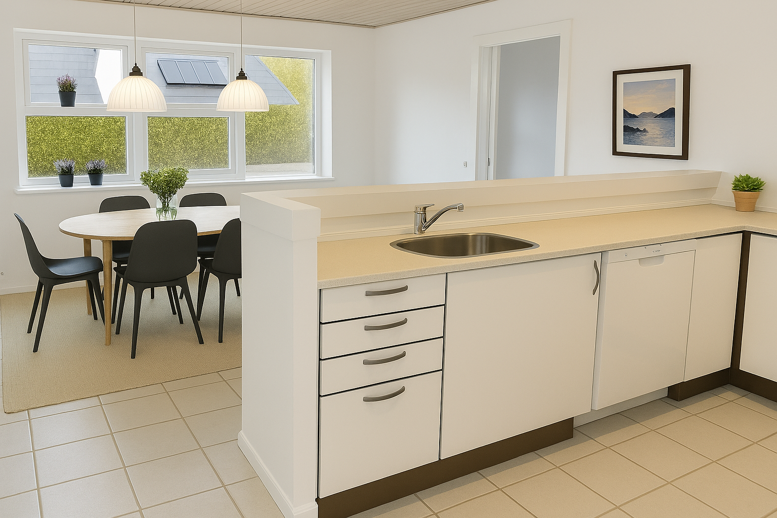 Lejligheden leveres nyistandsat med ny opvaskemaskine, ny indbygningsovn og nye kogeplader, og er klar til indflytning.