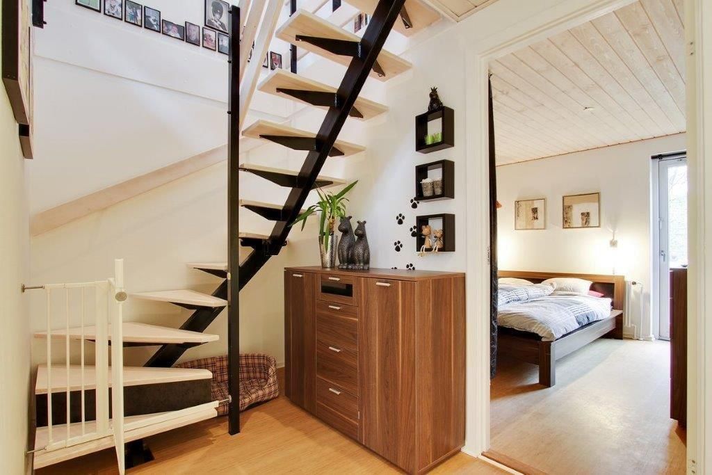 Skoven ligger 50 m fra huset, vandet 500 m, og legeplads/boldbane 50 m