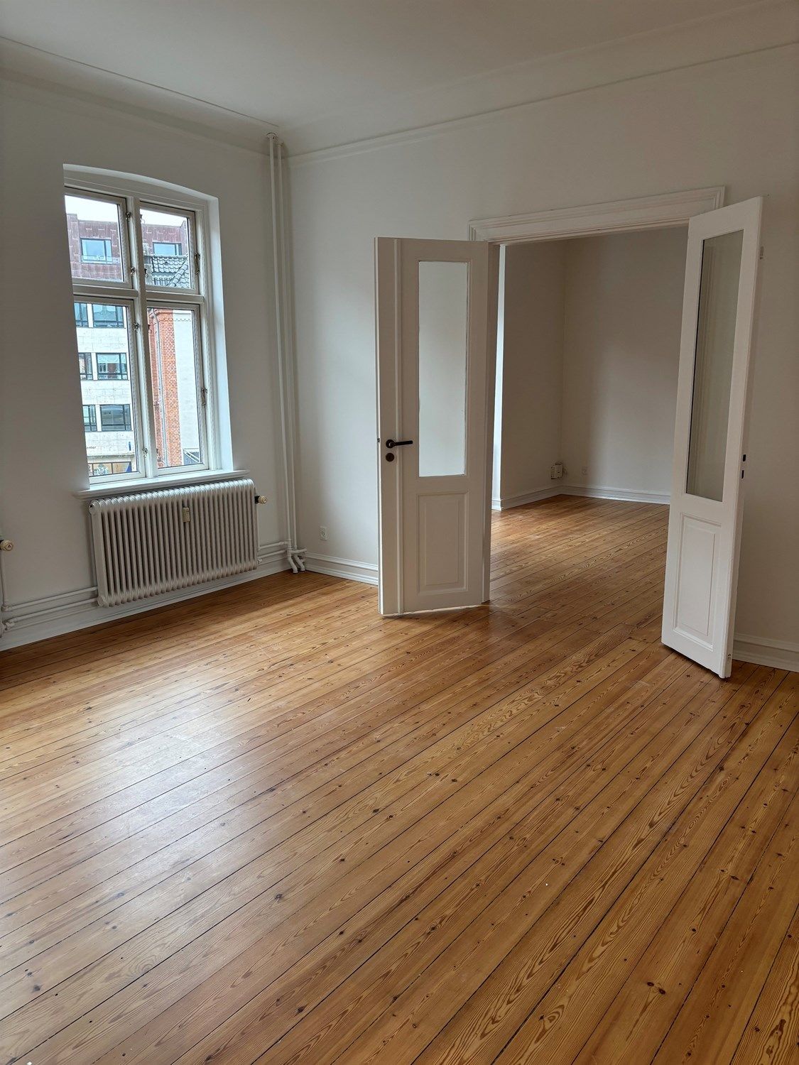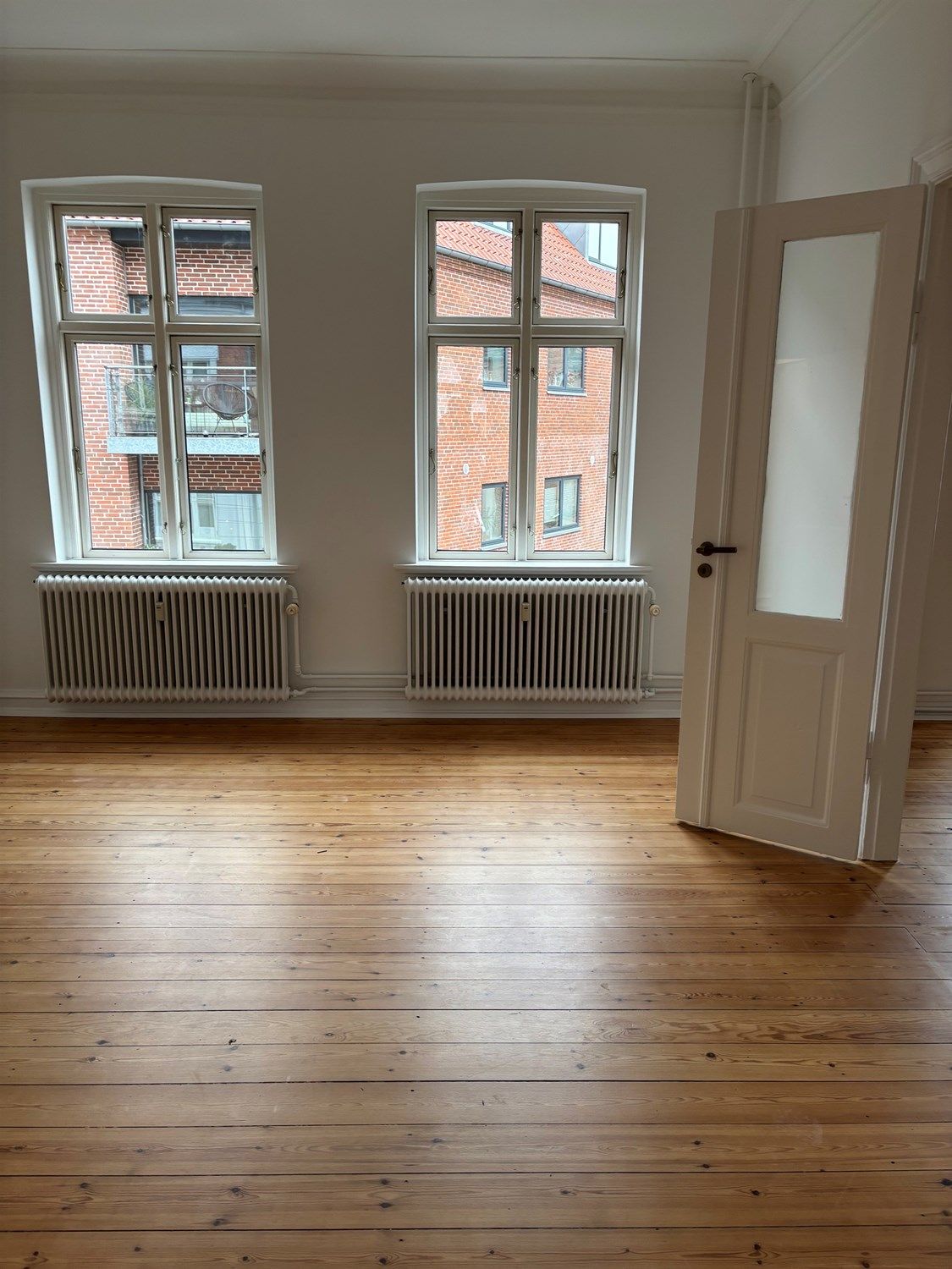 Lejligheden byder på en rummelig entré, to store stuer med adgang til altan med smuk udsigt over Viborgsøerne, samt to værelser – det ene med udgang til en altan, der vender ind mod det hyggelige Sct. Mogensgården.