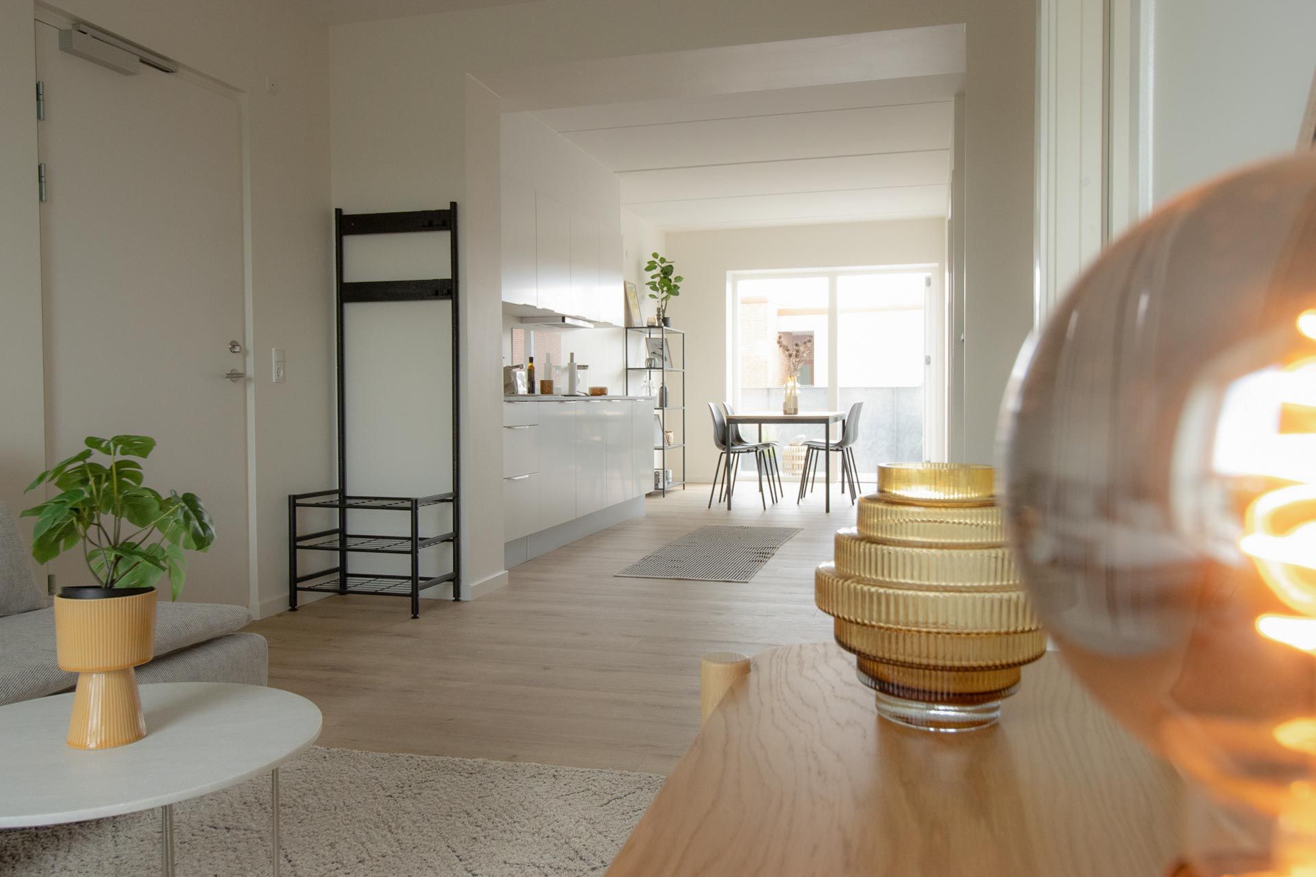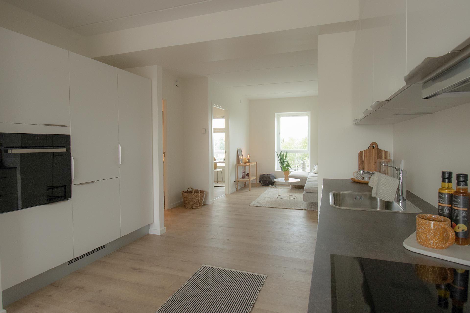 Attraktive lejeboliger med central placering I Banebyen bor du centralt i Viborg og er kun en kort gå- eller cykeltur fra alt, hvad du har brug for i hverdagen såsom indkøb, daginstitutioner, skoler og erhvervsuddannelser. Gågaderne med de mange butikker, restauranter og caféer er kun få minutter væk. Som du kan høre på navnet, bor du også tæt på banegården, hvorfra der er gode tog- og busforbindelser. Optimalt udnyttede 1-4 værelses lejligheder Ejendommen byder på 202 lyse og lækre boliger i Byhaven VEA herunder 138 lejligheder og 64 ungdomsboliger med varierende planløsninger med enten ét eller to værelser i størrelser fra 36-46 m2. Lejlighederne byder ligeledes på forskellige planløsninger med alt fra to til fire værelser og findes i størrelserne 51-97 m2. Fælles for både lejligheder og ungdomsboliger er adgang til fælles parkering samt cykelparkering i gården. Derudover findes der et fælles grønt gårdmiljø mellem boligerne, som rummer flere grønne oaser. Alle boliger har desuden eget depotrum, som sikrer dig ekstra opbevaringsplads. Lejligheden Fra entréen træder du ind i lejlighedens køkken-alrum. Rummet indbyder til at invitere gæster over til brætspil og god mad, der kan nydes enten ved stue- eller spisebordsområdet. I lejeboligen har du nemlig fin plads til både spisebord, sofa og TV-møbel. Boligens lyse soveværelse inkluderer to faste garderobeskabe, som sikrer dig masser af opbevaringsplads. Lejlighedens andet værelse er placeret i modsatte ende af soveværelset, hvilket gør det oplagt til både kontor, hobbyrum eller måske gæsteværelse. Med direkte adgang fra køkken-alrummet finder du badeværelset, som er opført med enkle og tidløse kvalitetsmaterialer. Her kan vasketøjet nemt klares, da du både har egen vaskemaskine og tørretumbler. Fra stuen kan du træde direkte ud på lejlighedens altan eller terrasse, hvor du kan nyde de lange, lyse sommeraftener. Her kan du glæde dig over plads til cafesæt, dekorative planter eller krukker med velsmagende krydderurter.