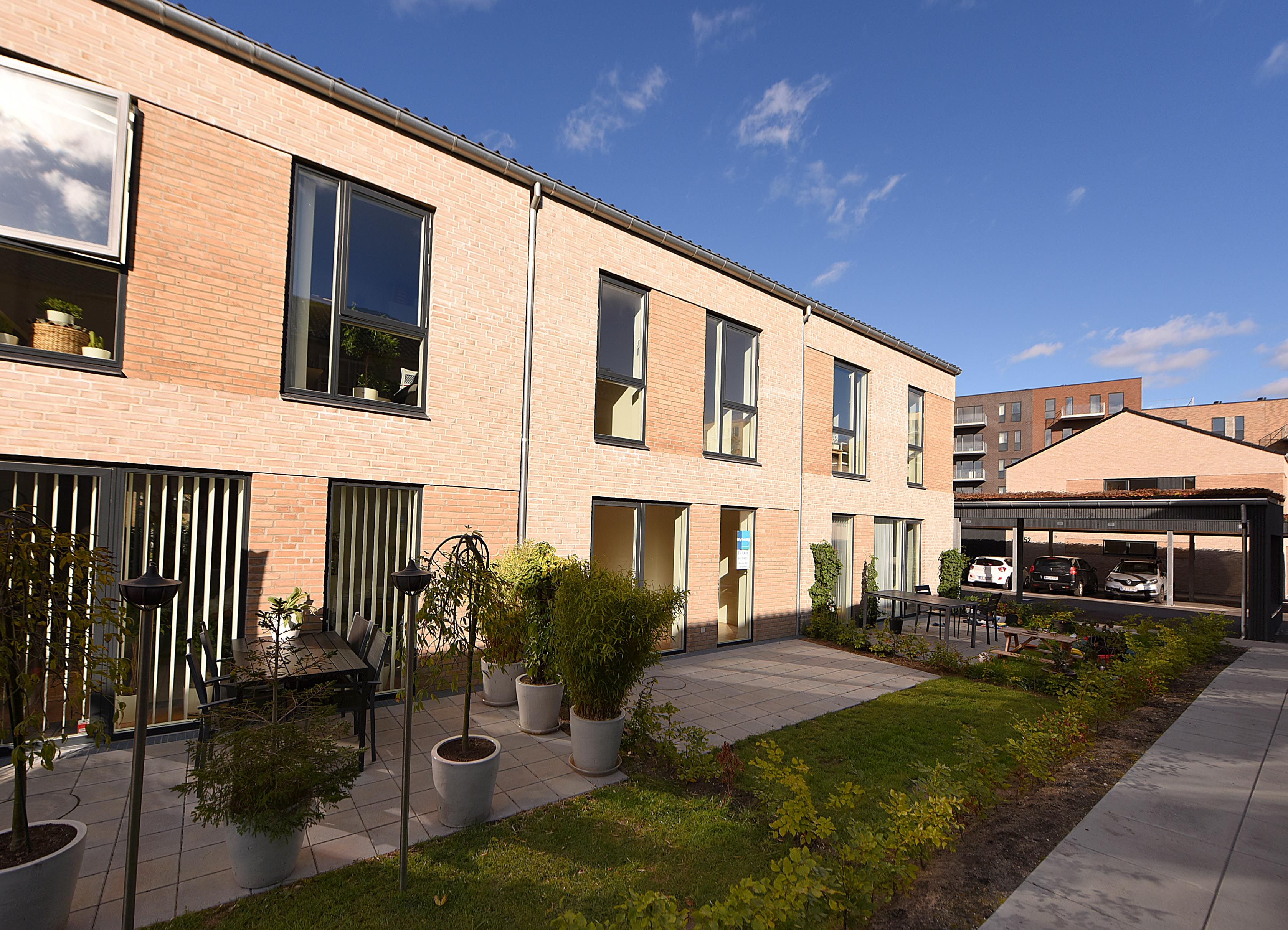 VELKOMMEN TIL RISSKOV HUSENE I dette lækre rækkehus fra 2020 får du: - Egen carport til bilen - Optimal indretning - Fantastisk fælleshus/aula - Tæt på idrætsfaciliteter - Gode indkøbsmuligheder Optimalt indrettet rækkehus beliggende i rekreativ oase i Risskov. Dette elegante rækkehus, der er opført i gode materialer med mange fine detaljer, udlejes til en kommende glad lejer. Underetagen indeholder lækkert åbent køkken fra Invita, dejlig lys stue med udgang til solorienteret terrasse og indbydende brusebadeværelse. Under trappen, der fører til 1. sal, har man desuden fint depotrum. Overetagen er indrettet med 3 gode værelser i forskellig gode størrelser, det ene med walk-in eller baby-/kontorniche. 1. sal har også et indbydende badeværelse. Uden for huset har man skønne terrasse områder, lidt græs og et godt udhus/skur. Facaderne er udført i smukke teglsten, med flotte zinktagrender og skuret er i antracitgråt træ, med sedumbelagt tag. Til alle rækkehuse tildeles en carport, således bilen kan holde i ly. Carporten er inkl. I lejen. Bebyggelsen er opført på Vejlby Skoles gamle grund og man har begavet valgt at bevare den smukke Aula som fælles hus. Her kan man tage et spil badminton på det elegante Ølandskiffergulv imens fjerbolden stryger op under det smukke trælamelloft. Der bliver også stillet et bordtennisbord til rådighed. Aulaen kan desuden, mod betaling, bookes til runde fødselsdage, konfirmationsfester eller hvad man kunne tænke sig af arrangementer, der kræver et skønt rum og meget plads. Via det store glasparti i den ene gavl, kan man let gå ud til den sjove legeplads, der bliver et centrum for Risskov Husene. Nærområdet indeholder et væld af sportsaktiviteter, lige fra svømmehallen i Vejlby Risskov til Motorik Hallen, der ligger som nabo. Det man hurtigt fornemmer i denne kvalitetsbebyggelse, er at der er roligt, og at bygningerne er opført med passende afstand imellem sig, således alle får lys, luft og plads til armbevægelser. Hvis man vil ind til centrum, er her kun 4 km ind til Domkirken, ligesom man hurtigt kan gå ned til stranden eller tage på picnic i Riis Skoven. Skal man længere væk kan motorvejsnettet nås på blot 5-7 minutter i bil. Kort sagt, en skøn oase for den lejer der vægter ro, æstetik, skønhed og ønsker alt i umiddelbar nærhed. Der skal søges om tilladelse til at holde husdyr, hvis man ønsker dette. Hunde må maks. veje 15 kg. som fuldvoksne og man må kun have ét pr. bolig.