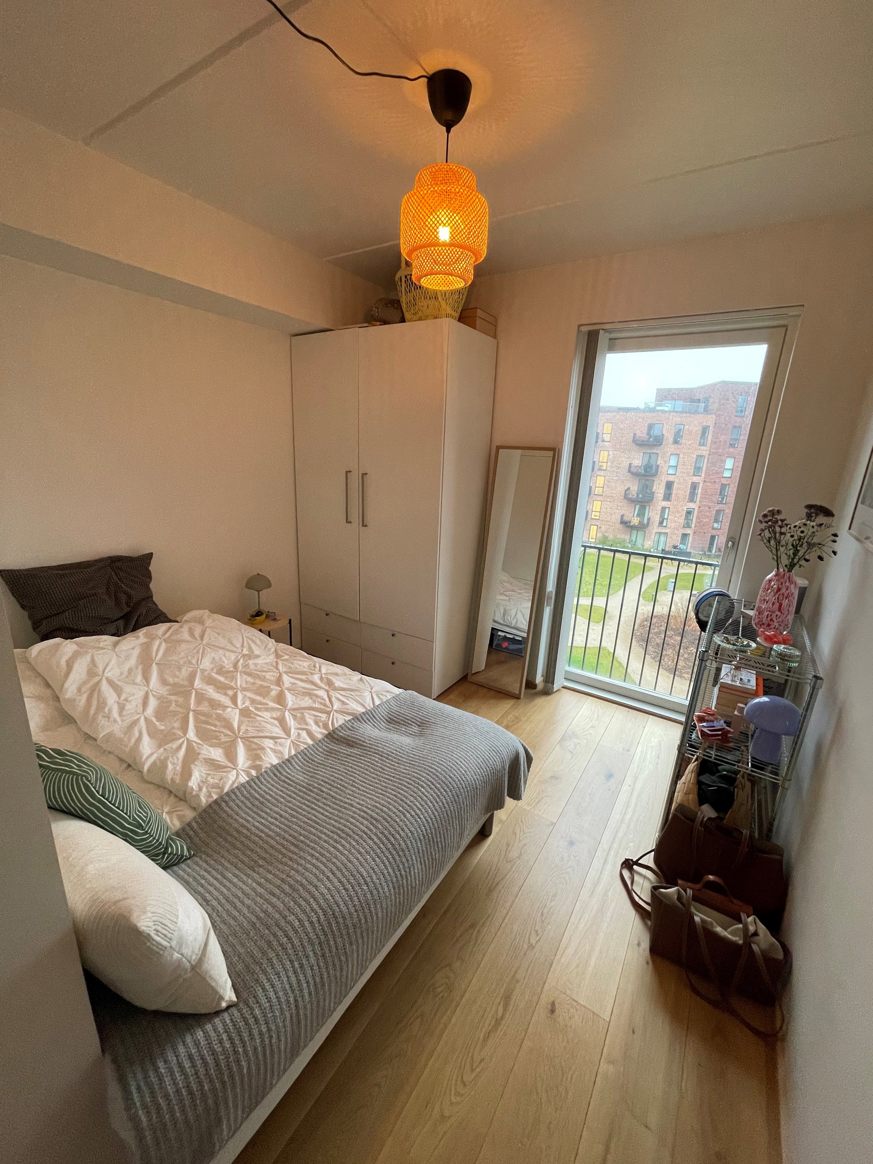 Soveværelset har faste garderobeskabe og fin plads til dobbeltseng og øvrigt møblement. Det ekstra værelse giver masser af muligheder: hjemmekontor, walk-in-closet, hobbyrum eller børneværelse – du bestemmer.