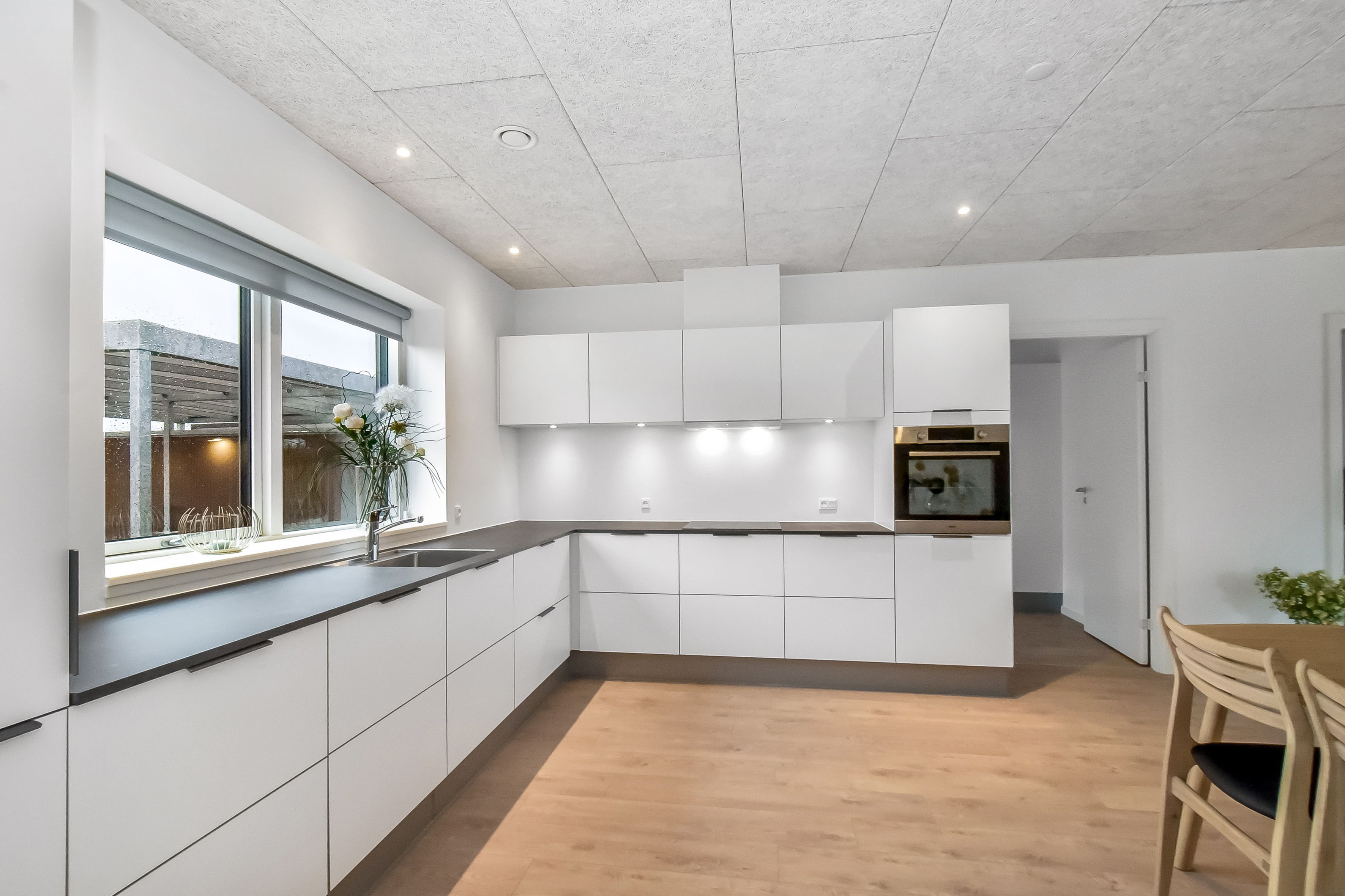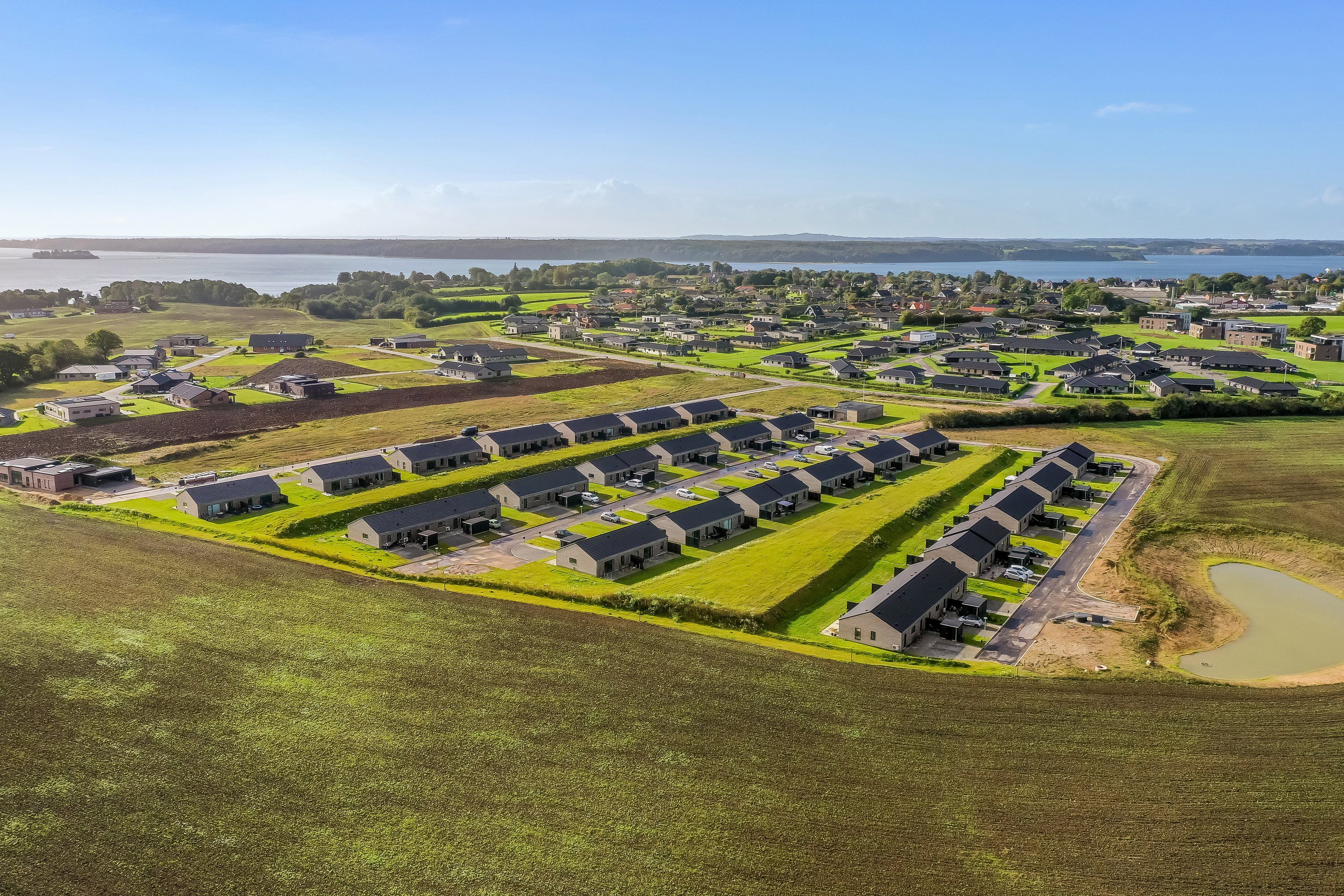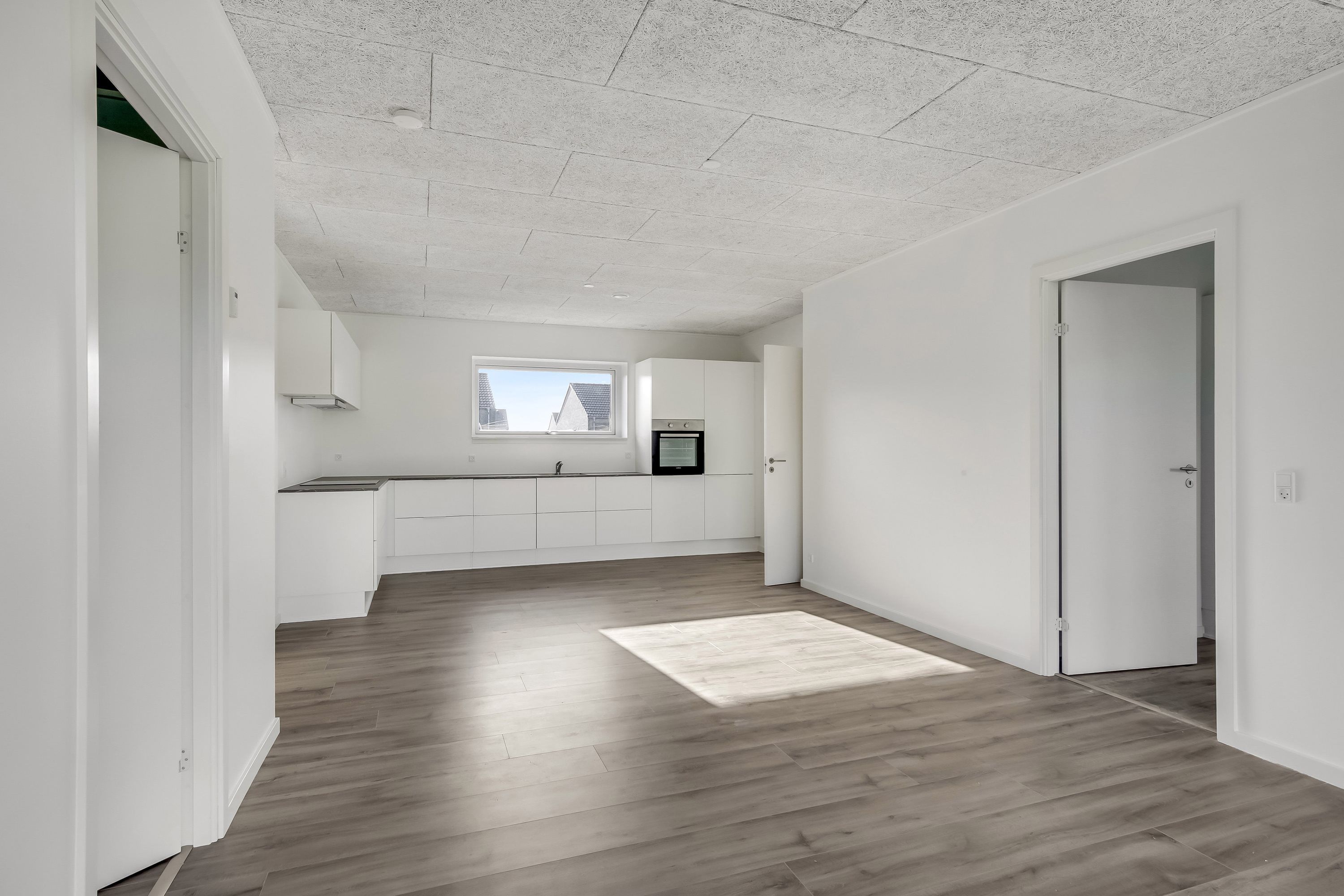 KONTAKT OS FOR AT BOOKE EN FREMVISNING ELLER MELD DIG TIL ÅBENT HUS HVER TORSDAG FRA 14-15. Nymarkshaven er stilrene, velindrettede lejeboliger tæt på det hele. Størrelserne på boligerne er fra 56-136 m2, og selve indretningen gør dem velegnede til både singler, seniorer og små og store familier. Alle lejlighederne er velindrettede med bl.a. flot hvidt køkken i åben forbindelse med stuen, lækkert badeværelse med vaskesøjle. Der er masser af lysindfald i lejlighederne, og alle har adgang til egen lille terrasse eller altan. Materialevalget understøtter bebyggelsens generelle moderne nordiske stil. Opholdsrummene har rustikke asketrægulve, som er både smukke og praktiske. Køkkenelementer er i minimalistisk design fra Invita i modehvid. Grebene er indfræsede og optager dermed ikke plads, men giver i stedet både rene linjer og høj funktionalitet. Alle hårde hvidevarer er fra Siemens. Badeværelserne er enkelt og tidløst indrettede med god plads til de installerede vaskemaskiner og tørretumblere fra Siemens. Badeværelserne har flotte klinker på gulv og i bruseniche. Vægge og lofter er malet hvide, så du let kan sætte dit eget individuelle præg på rummet. Hver lejlighed har eget depotrum, der er fælles parkeringsplads samt fælles orangeri/væksthus, som indbyder til at mødes og hygge sig i hinandens selskab, mens børnene leger og bruger deres energi i trygge omgivelser. Området fremstår meget indbydende og veletableret med grønne arealer, træer og hyggelige kroge. I området er der nemt afgang til både Brugsen samt Netto – og så er der kort afstand til Øster Strand, Volden samt gågaden. Så med en beliggenhed i Nymarkshaven er du tæt på mange ting og ikke mindst et godt naboskab. Det er også værd at fremhæve, at motorvejene E45 og E20 gør det nemt at komme videre til sit destinationsmål. Du må have din lille hund eller kat med (cirka 10 kg) - skal godkendes af udlejer. OBS. billederne viser vores tidligere udstillingslejlighed og ikke nødvendigvis den pågældende lejlighed. **Plantegningen er vejledende og uden ansvar.