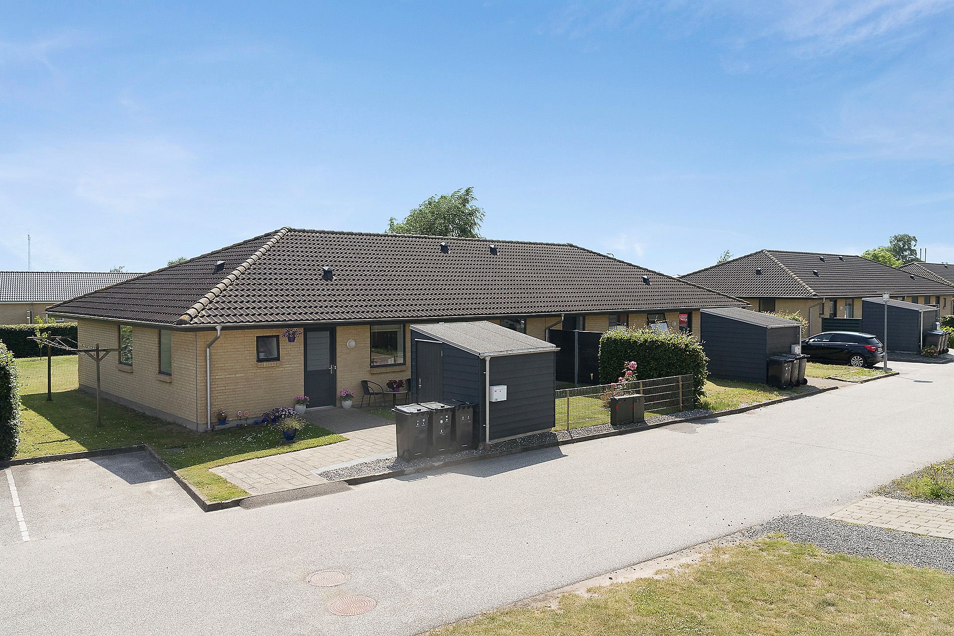De fritliggende dobbelt- og rækkehuse er opført i klassiske gule mursten og byder på en funktionel planløsning med fokus på komfort og trivsel. Her får du et hjem med privat terrasse, et lille grønt haveareal og masser af plads til både store og små. Området er lukket og roligt Perfekt for familier, der ønsker trygge rammer. I nærområdet finder du både fodboldbane og legeplads til de mindste.