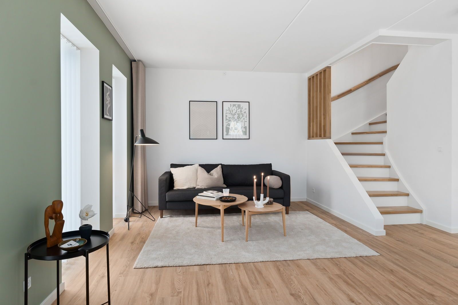 Med sine 115 kvadratmeter fordelt på to etager og fire rummelige værelser, tilbyder dette rækkehus masser af plads til familien. I stueetagen finder du et åbent og lyst opholdsrum, der smukt forbinder stue og køkken – det perfekte samlingspunkt for familiehygge. Køkkenet er veludstyret med rigelig bord- og skabsplads.