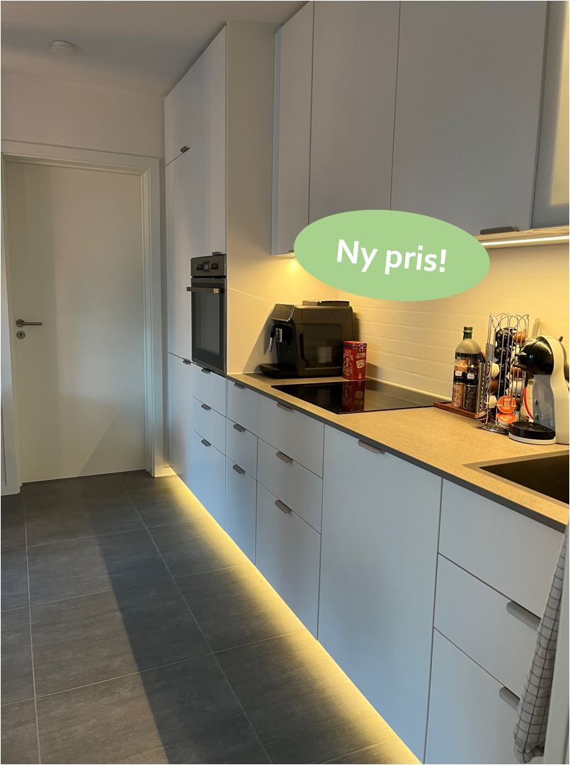 Boligen indeholder indbygningsovn, induktionskogeplade, kølefryseskab, opvaskemaskine, vaskemaskine og tørretumbler fra Blomberg samt emhætte fra Silverline.