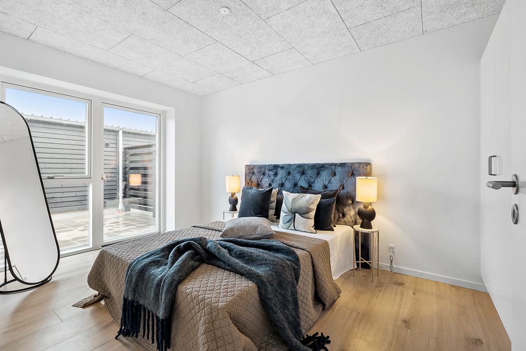 𝗢𝗕𝗦: 𝗜 𝗱𝗲𝘁𝘁𝗲 𝗹𝗲𝗷𝗲𝗺𝗮̊𝗹 𝗲𝗿 𝗱𝗲𝘁 𝗲𝘁 𝗸𝗿𝗮𝘃, 𝗮𝘁 𝗱𝘂 𝗲𝗿 𝟱𝟱+ 𝗮̊𝗿 𝗼𝗴 𝘂𝗱𝗲𝗻 𝗵𝗷𝗲𝗺𝗺𝗲𝗯𝗼𝗲𝗻𝗱𝗲 𝗯ø𝗿𝗻. Alle rækkehuse er i ét-plan. Du træder ind i en entré belagt med klinker. Her finder du vaskemaskine og tørretumbler samt godt med skabsplads og en bordplade med vask. Der er et stort, lyst køkken-alrum med plads til stue. Badeværelset har lyst inventar og separat bruseniche og skab. Afhængigt af størrelserne på boligen er der 2 eller 3 værelser. Ét af værelserne vil være større og velegnet til soveværelse. Fra soveværelset er der udgang til husets ene terrasse foran huset, og fra køkken-alrummet er der udgang til den anden terrasse bag huset. Der er gulvvarme i alle boligens rum. Hårde hvidevarer Du får alt i hårde hvidevarer. Husdyr Lejere kan ansøge om tilladelse til at holde indekat og hund på adressen. Udekatte er ikke tilladt. Kontakt os for mere information. Parkering Alle rækkehusene har egen carport og en ekstra parkeringsplads. Der er mulighed for at koble en el-ladestander op på egen regning. De viste billeder kan være fra et andet men tilsvarende lejemål i samme ejendom. Mindre afvigelser kan derfor forekomme