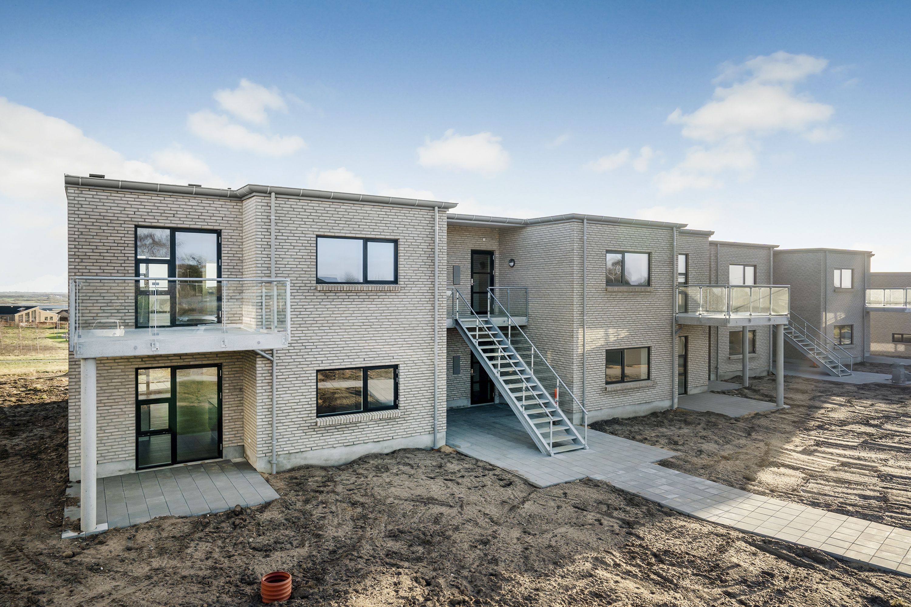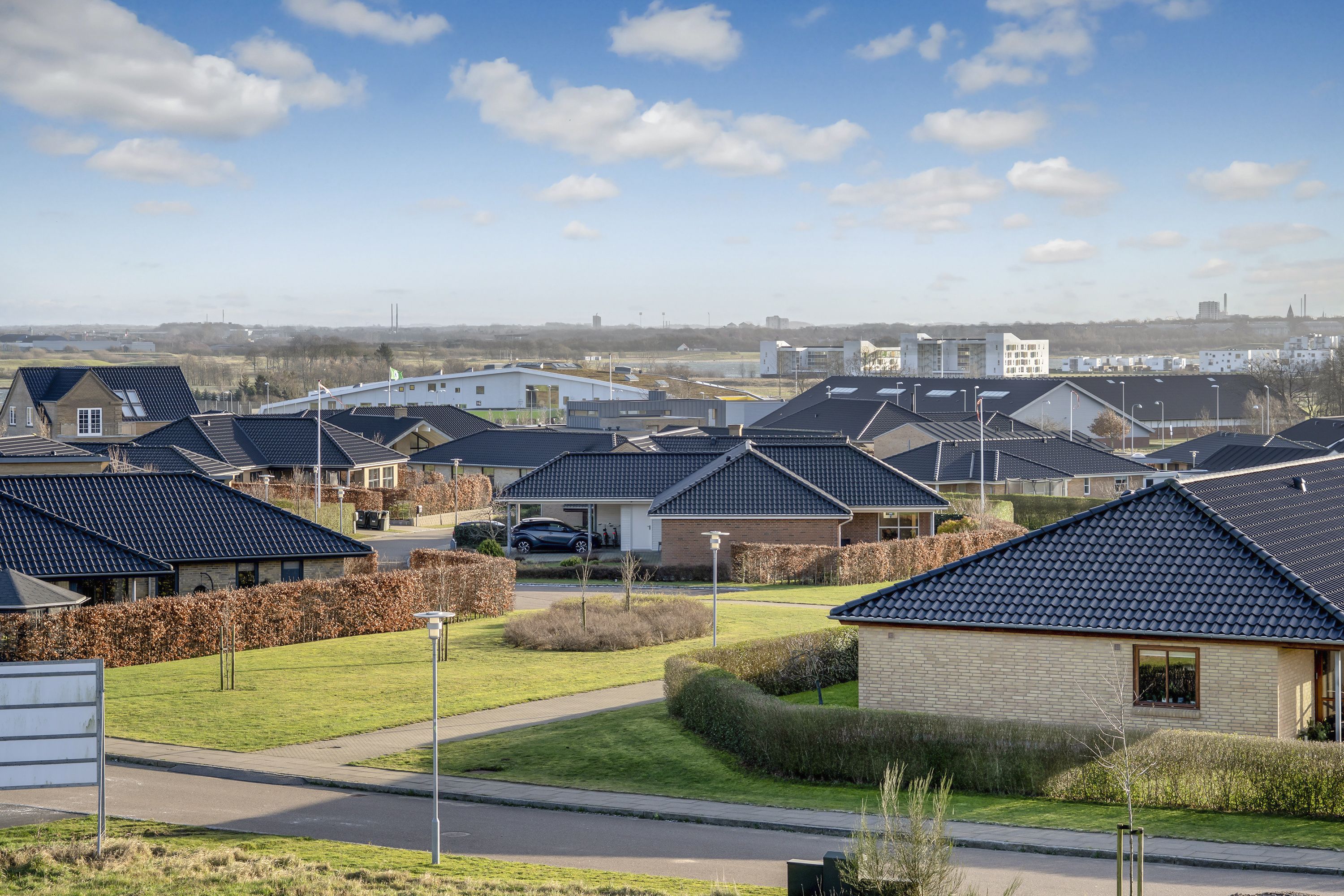 Ved ankomsten til denne boligvej, vil man straks bemærke en følelse af nærhed og fællesskab. Bebyggelsen er i harmoni med den omkringliggende skønne natur og er struktureret omkring mindre, individuelle enheder med god luft imellem.