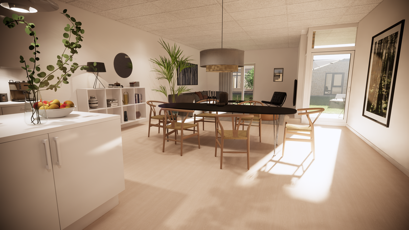 Boligen har et dejligt stort køkken/alrum og stue, som er omdrejningspunktet for hele boligen.