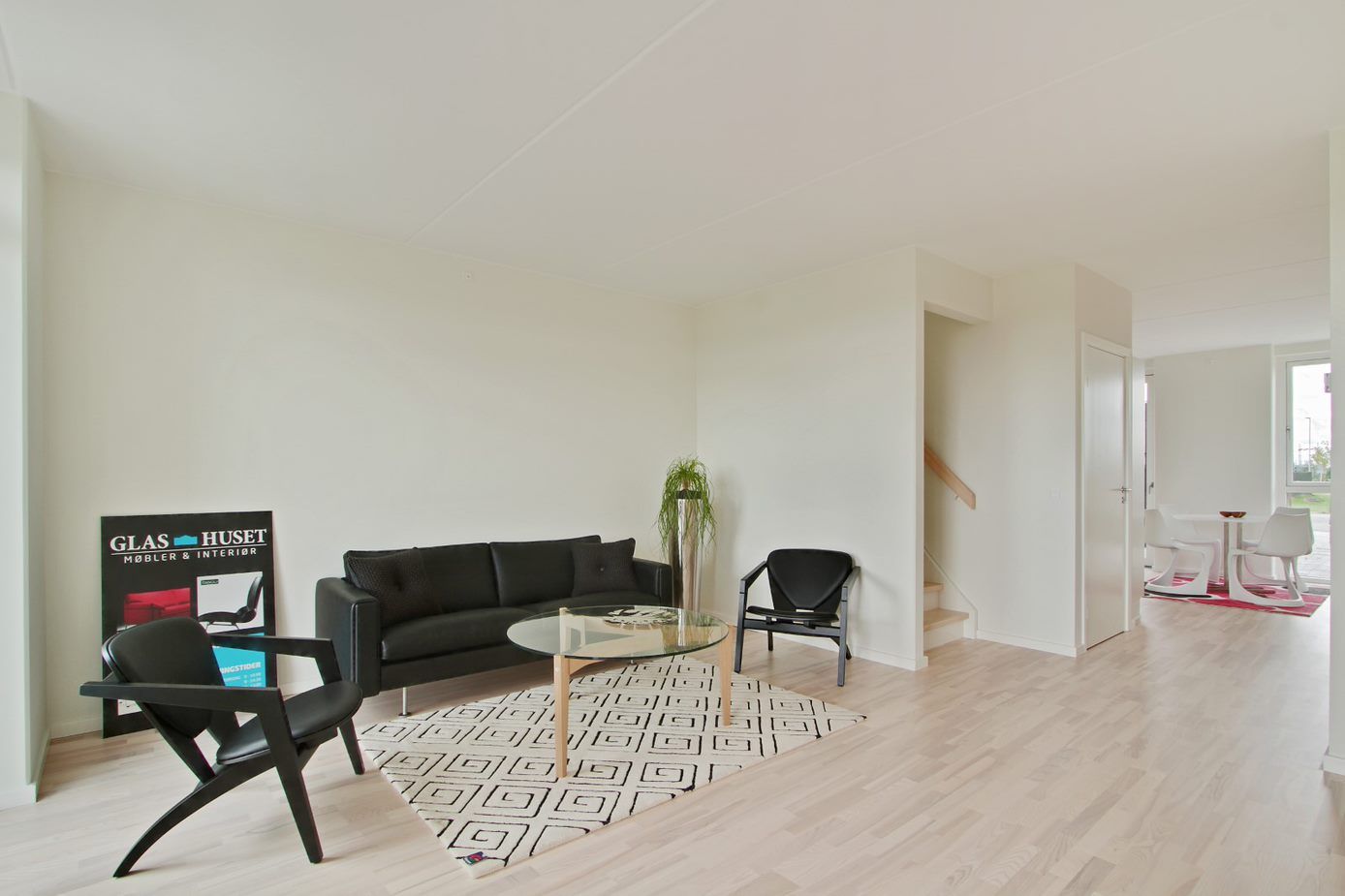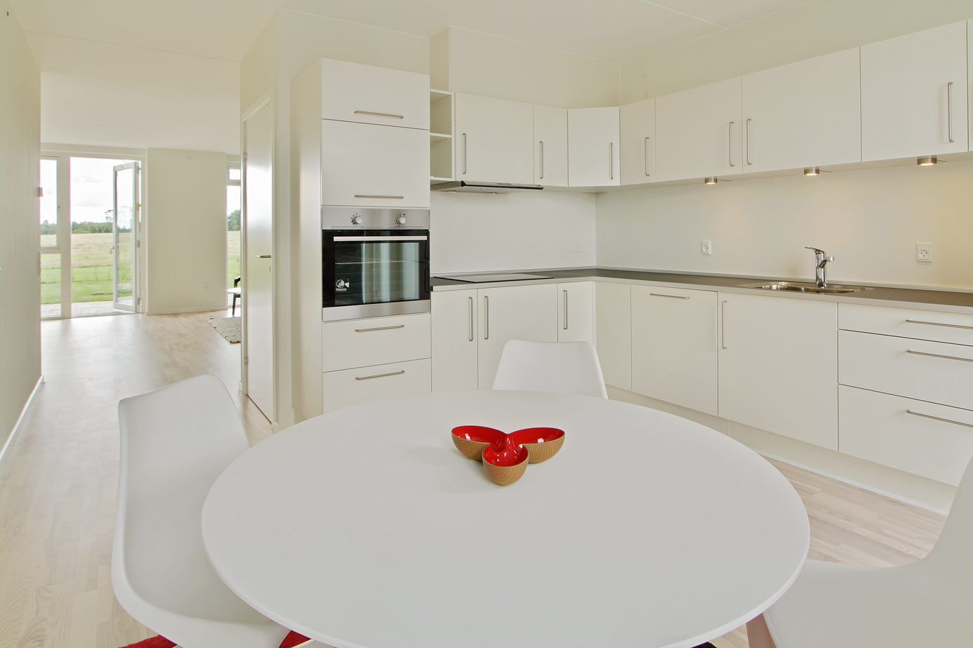Rækkehuset indeholder hvidt HTH køkken med sort granitbordplade.