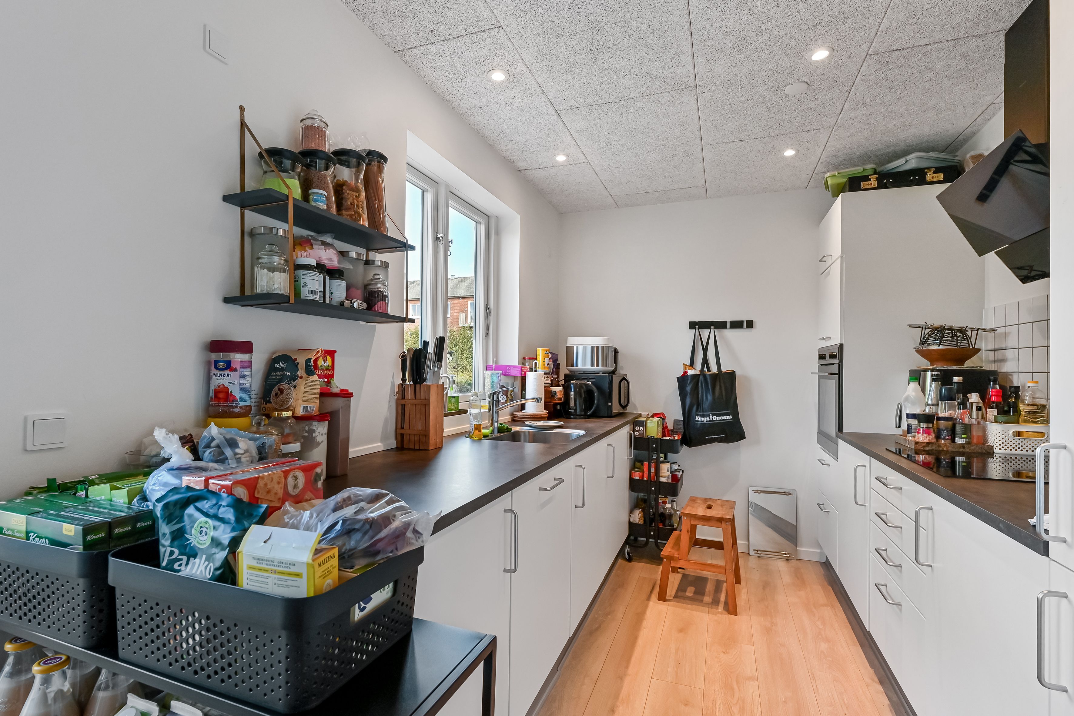 Der er monteret køle/fryseskab, ovn, keramisk kogeplader, samt opvaskemaskine.