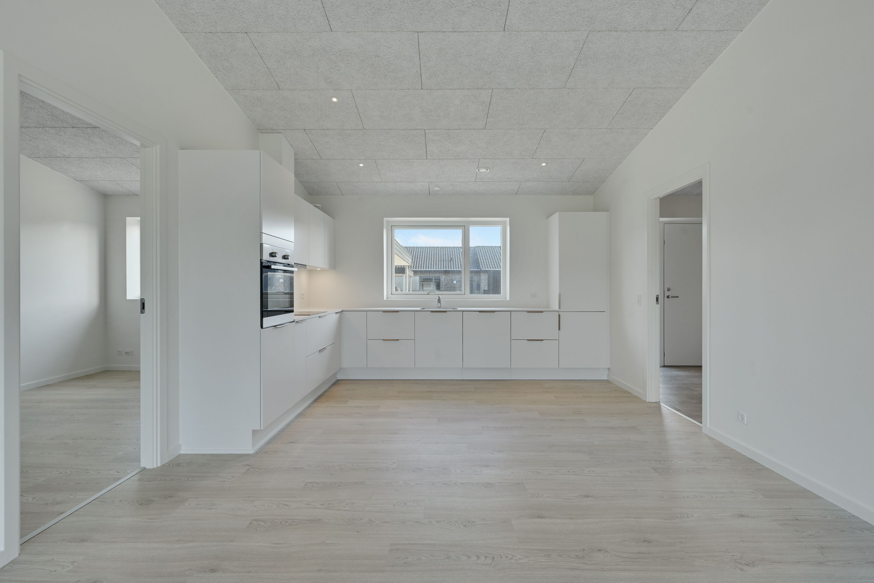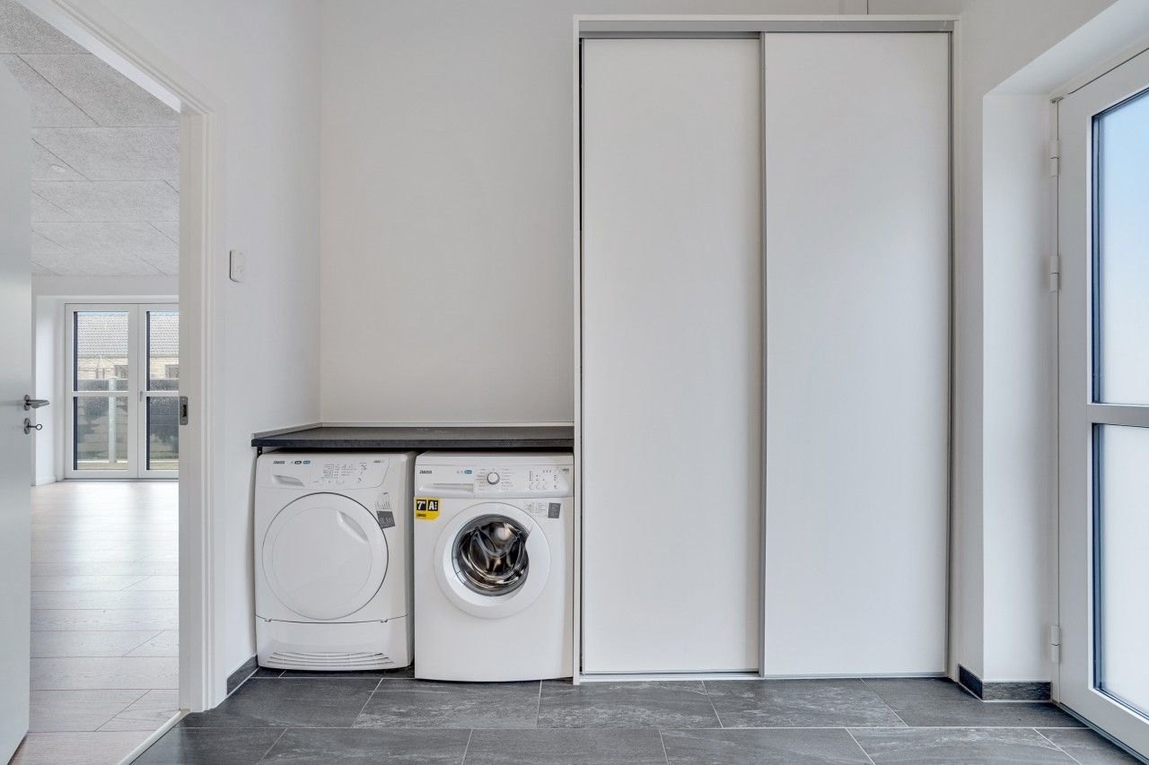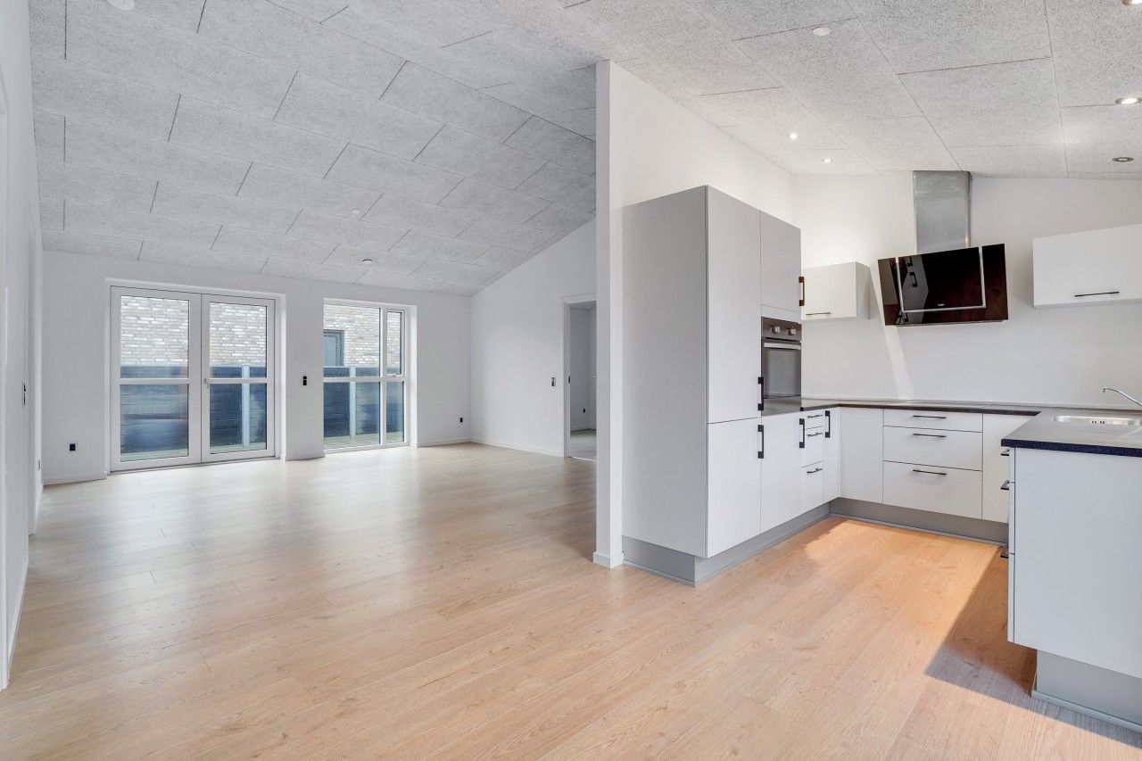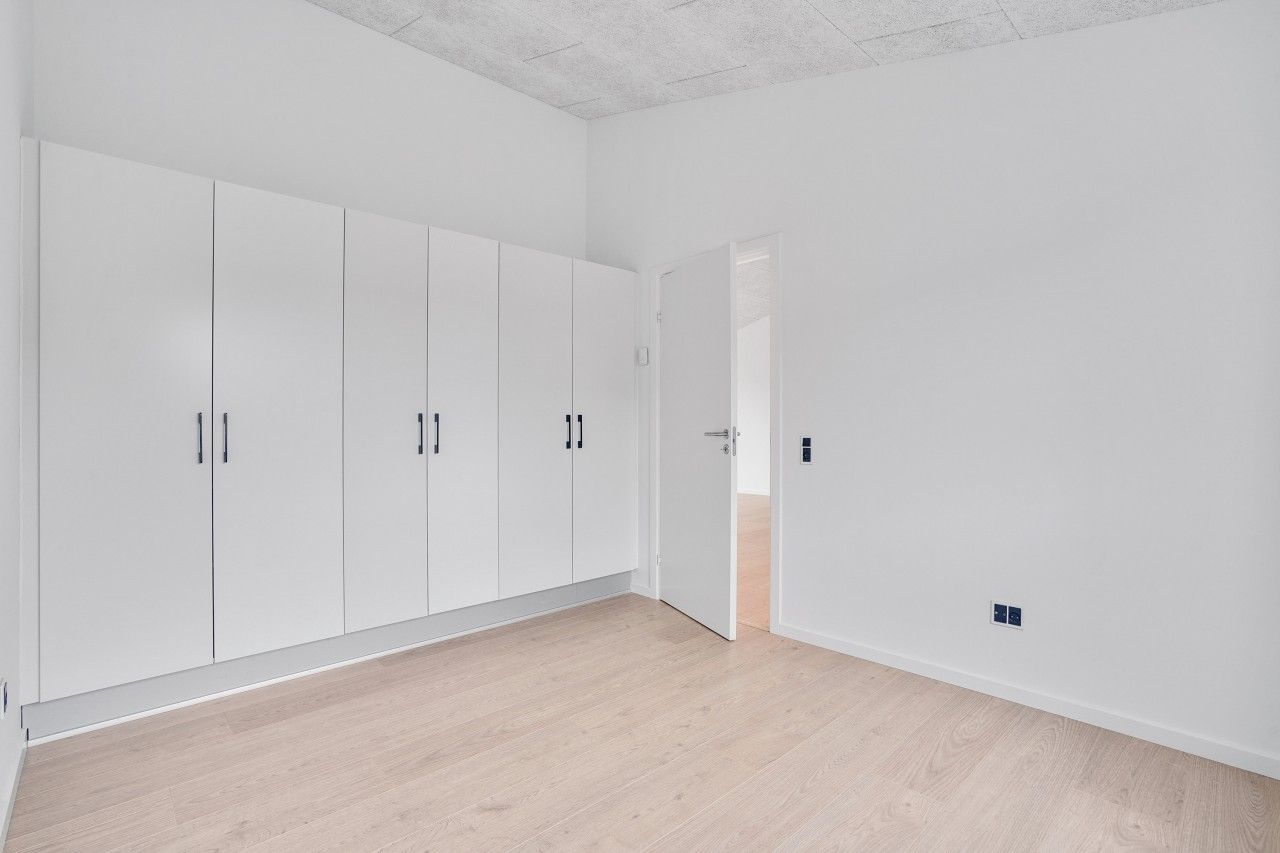 Fin lille entre, nyere køkken som er integreret med stuen og hvor der er udgang til en dejlig lukket sydvestvendt have. Dejlig soveværelse med stort garderobeskab. To næsten identiske værelser i en god størrelse. Lille bryggers også med nyt inventar, inklusiv vaskemaskine og tørretumbler. Pæn lyst badeværelse med bruseniche.