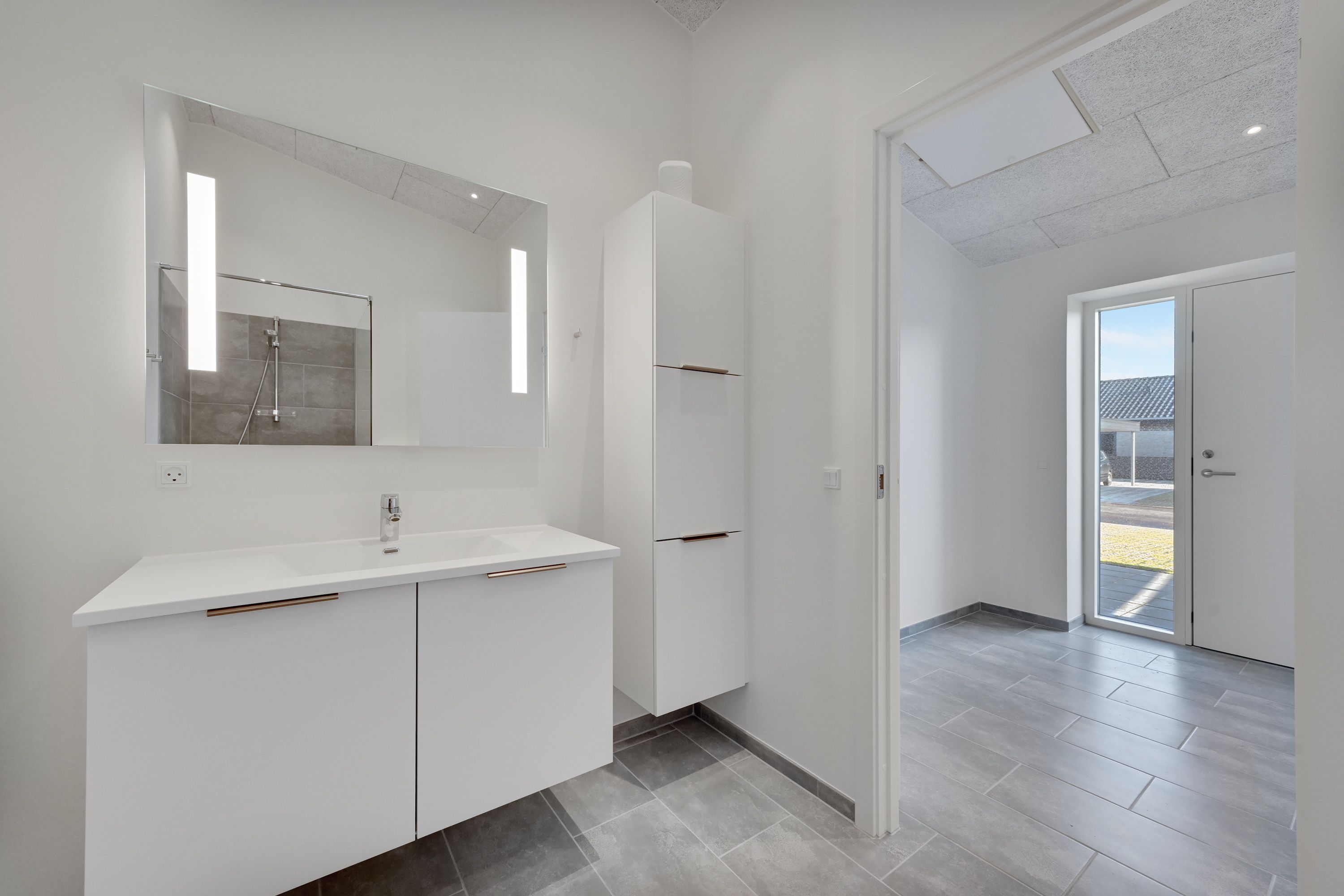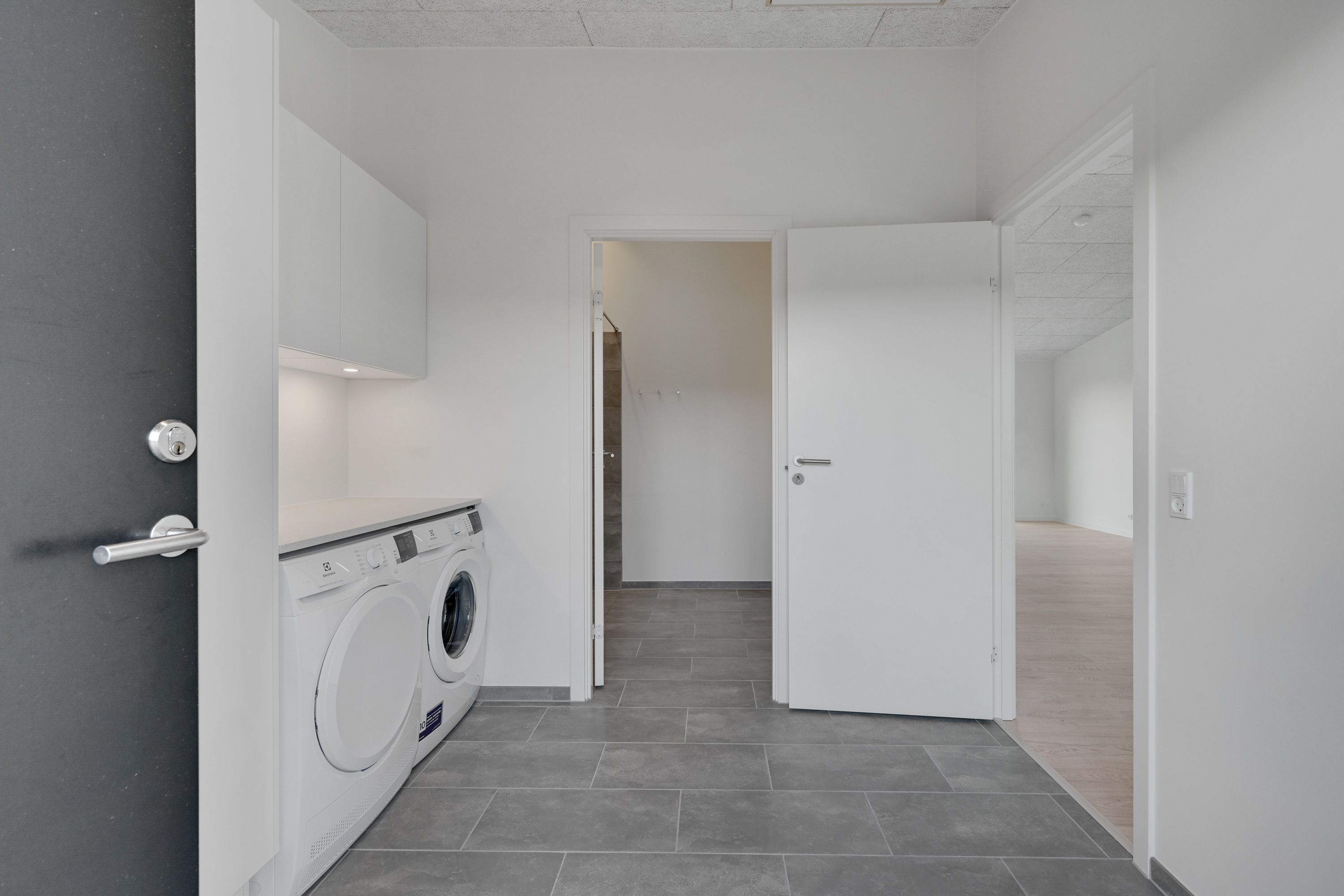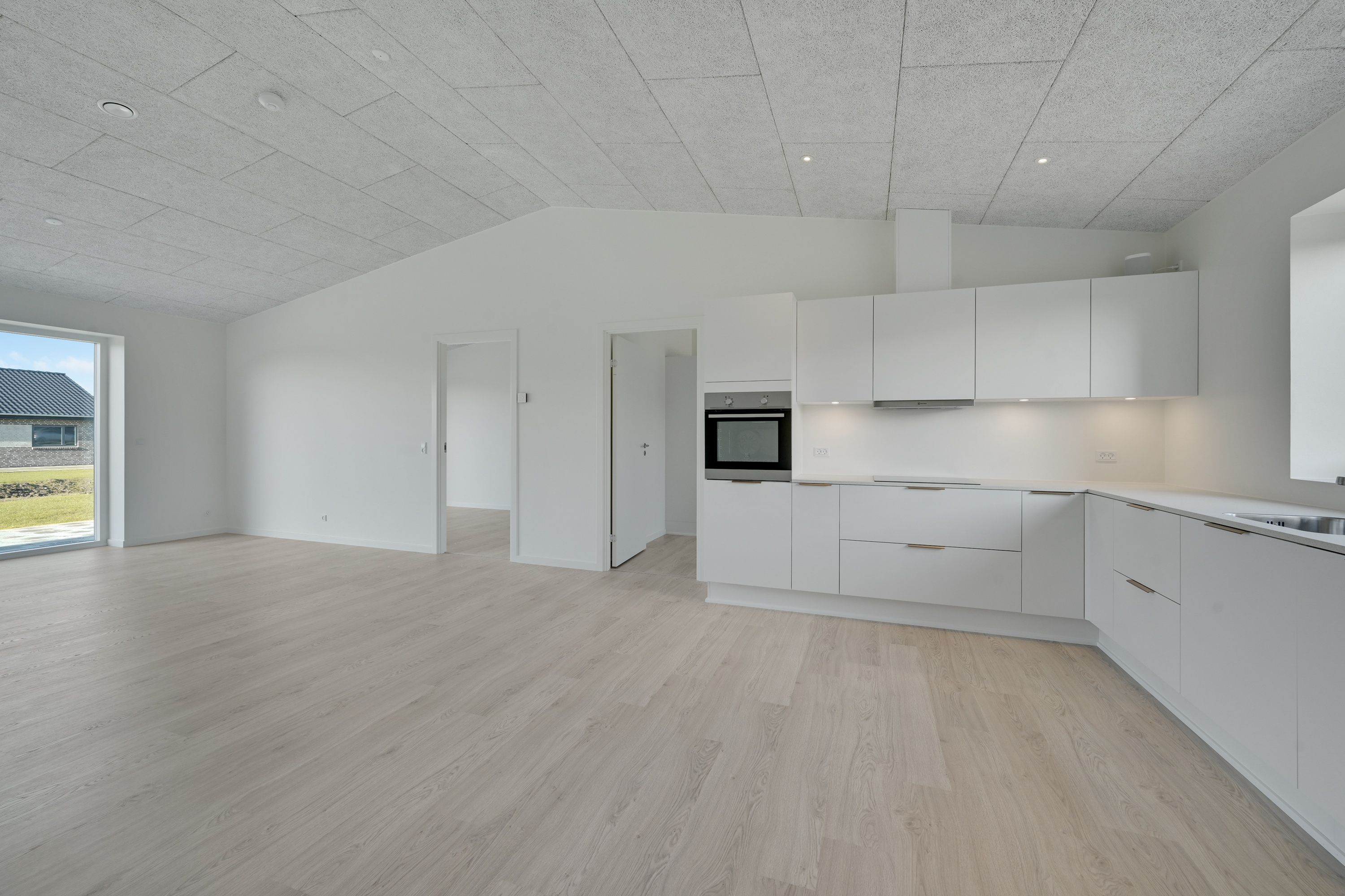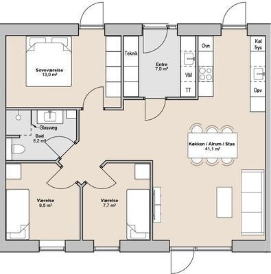 Fin lille entre, nyere køkken som er integreret med stuen og hvor der er udgang til en dejlig lukket sydvestvendt have. Dejlig soveværelse med stort garderobeskab. To næsten identiske værelser i en god størrelse. Lille bryggers også med nyt inventar, inklusiv vaskemaskine og tørretumbler. Pæn lyst badeværelse med bruseniche.