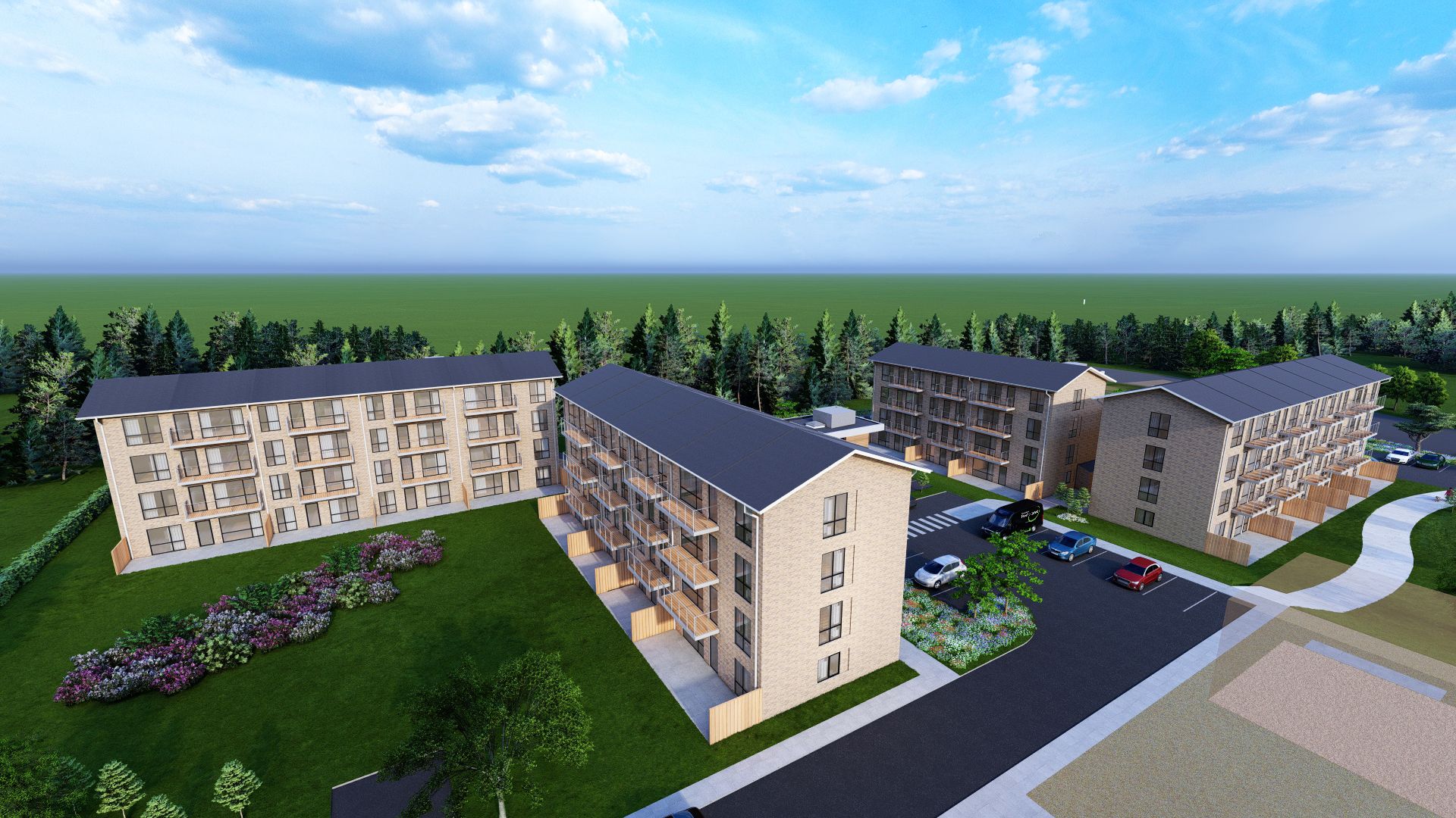 I Ikast udlejer vi 46 skønne rækkehuse. Arealer og antal værelser varierer, men alle boliger er bygget i ét plan med 3-4 værelser i lyse nuancer. INDE: Rækkehuset er lyst og indbydende med gulve i lys eg, entré med skabe, et skønt køkken med Svane-inventar i åben forbindelse med stue, stort badeværelse og to værelser. UDE: Til boligen hører en privat terrasse med læhegn, hvor man som lejer kan nyde vejret ugeneret. Foran hver bygning har alle lejere eget redskabsskur på 4m2. HÅRDE HVIDEVARER: Alle boligerne har køle/fryseskab, vaskemaskine, tørretumbler, opvaskemaskine, emhætte og kogeplade. HUSDYR: Katte: Lejere kan ansøge om tilladelse til at holde én indekat på adressen. Udekatte er ikke tilladt. Hund: Lejere kan ansøge om tilladelse til at holde én mindre hund. Store hunde er ikke tilladt. Andre dyr: Kontakt os for vores samlede husdyrsregler. PARKERING: Alle boliger har egen parkeringsplads FÆLLESAREALER: Boligparken er lukket om sig selv i en halvcirkel med plads til socialt samvær på de dejlige, grønne arealer. OM OMRÅDET: Kun 5 minutter fra boligerne finder du tilkørslen til Herningmotorvejen, hvorfra Herning kan nås på 15 minutter, Brande på 20 minutter, Silkeborg på 30 minutter og Aarhus på 55 minutter. Boligerne er dermed yderst attraktive for dem, der ønsker at bo centralt i Jylland i pendlerafstand til et væld af jyske arbejdspladser - og så endda til en lavere husleje end de store byer kan tilbyde. Foretrækker man offentlig transport er der fra boligerne kun 4 kilometer til Ikast Station, der forbinder Ikast med Skjern mod vest og Aarhus mod øst.