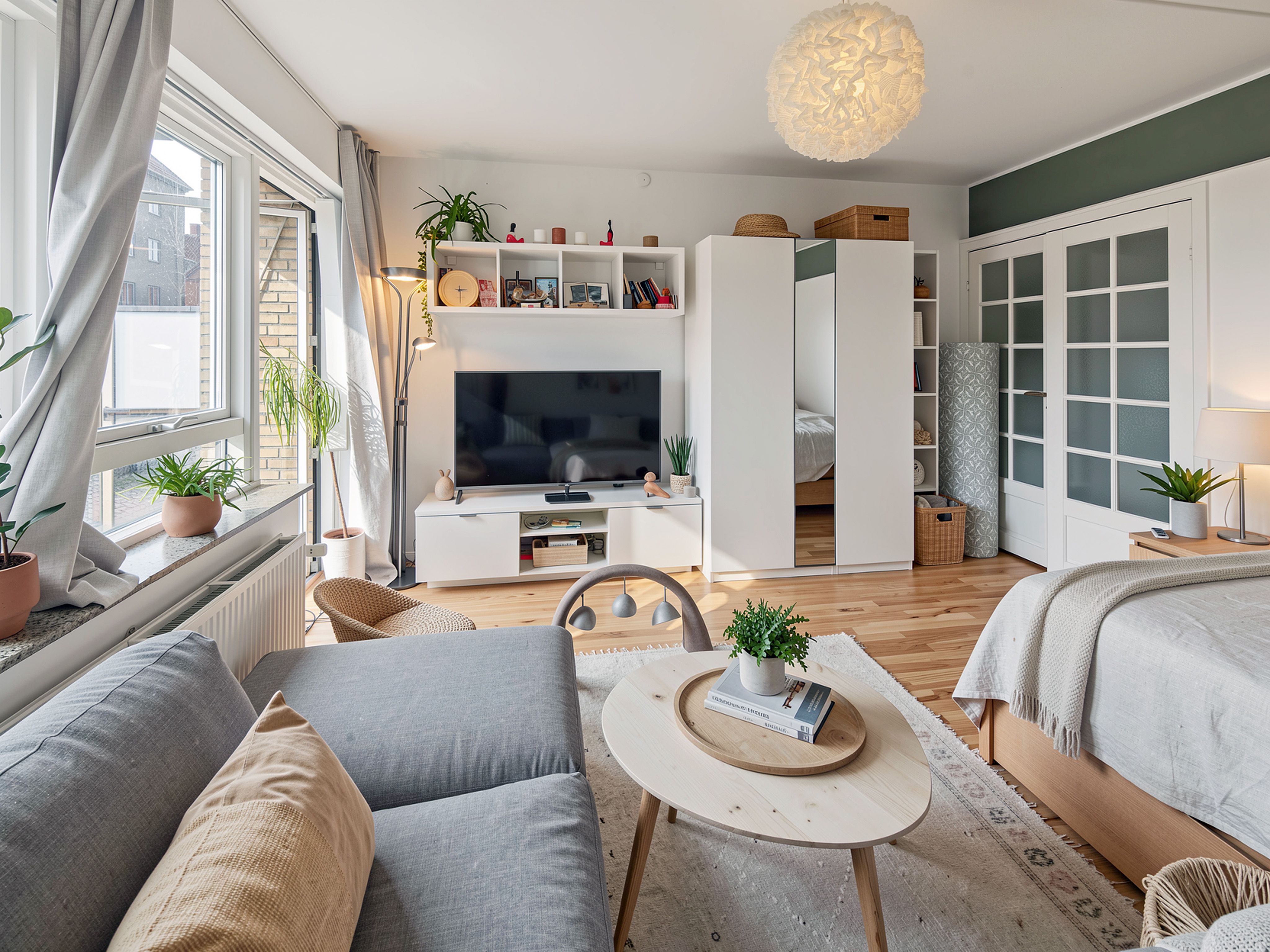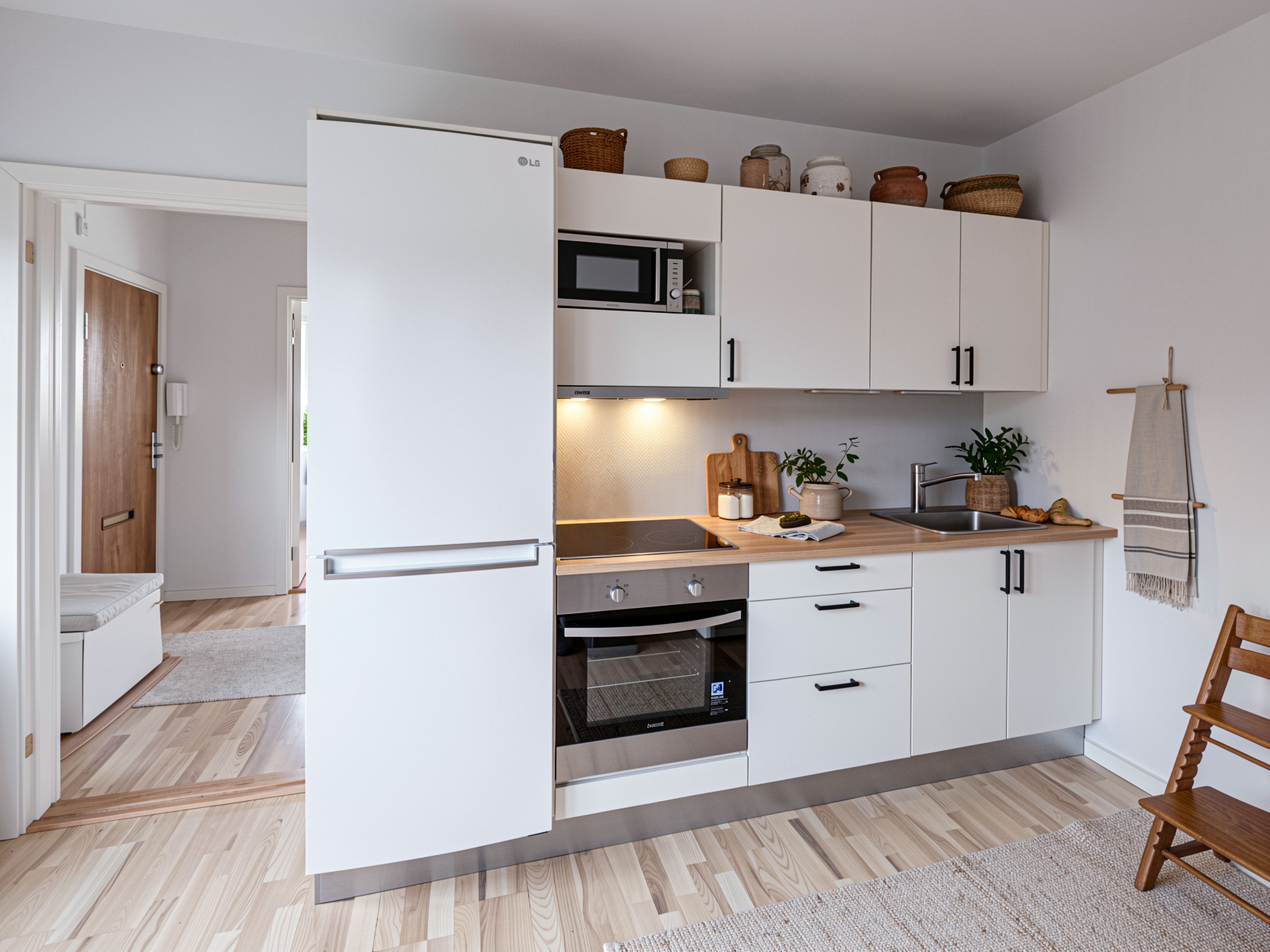 Boligen har en funktionel planløsning med opholdsrum i stueplan og værelse på førstesalen. I stueetagen er et lyst og køkken-alrum og stue i ét åbent rum. Køkkenet er stilrent og praktisk indrettet med gode opbevaringsløsninger og alle nødvendige hvidevarer. De store vinduespartier sikrer et dejligt lysindfald, og det flotte sildebensgulv giver rummet et eksklusivt præg.