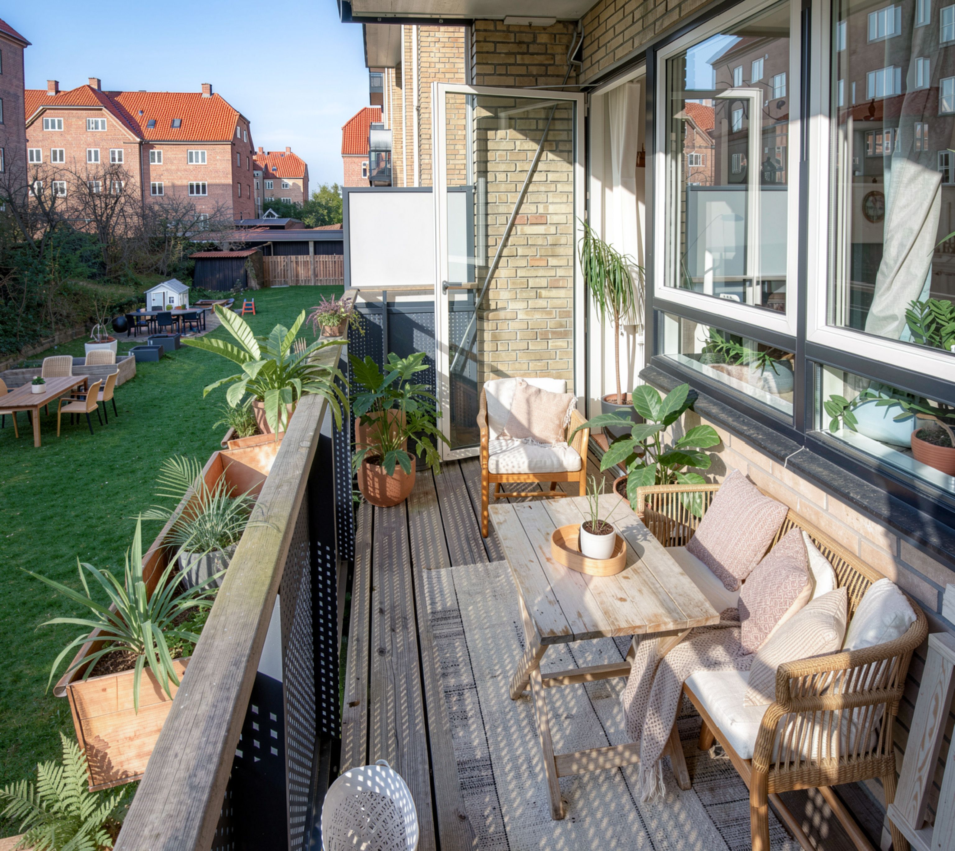 Som enderækkehus er der også en skøn have, der omkranser boligen på tre sider. Her er både for- og bagterrasse, så man kan nyde solen hele dagen. Derudover medfølger et udhus/skur.