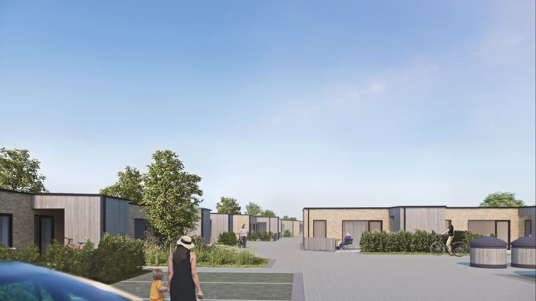 Til hvert lejemål hører der desuden et privat skur, som giver ekstra opbevaringsmuligheder til alt fra cykler og barnevogne til havemøbler. Rundt i området finder du fælles parkeringsarealer, hvor der også er opsat el-ladestandere, som nemt betjenes via app – en praktisk løsning for elbilister i hverdagen.