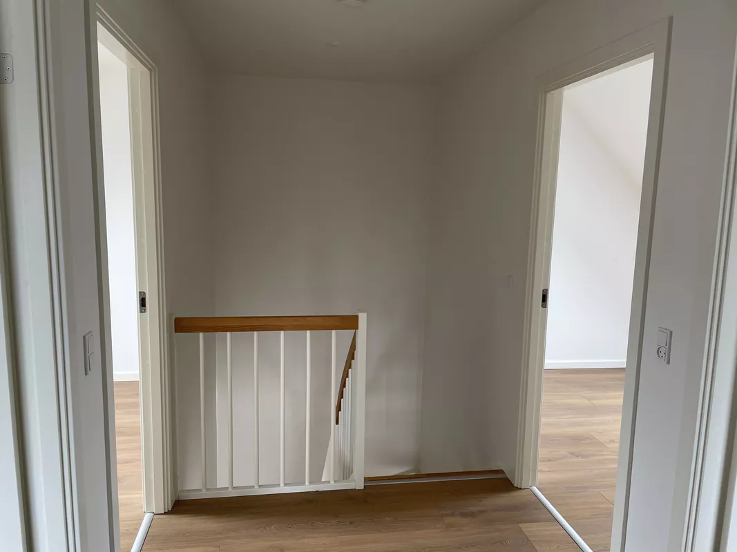 På 1.salen er der stort soveværelse med skabsvæg og 2 store børneværelser med skabe samt badeværelse med brus. Der er trold-tekt loft til kip.