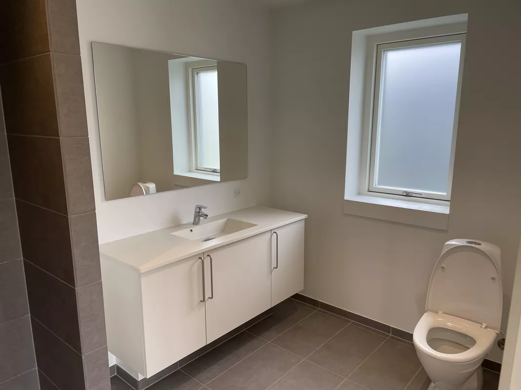 Der er parket i alle opholdsrum og klinkegulve i gang, bad og brygges med gulvvarme.