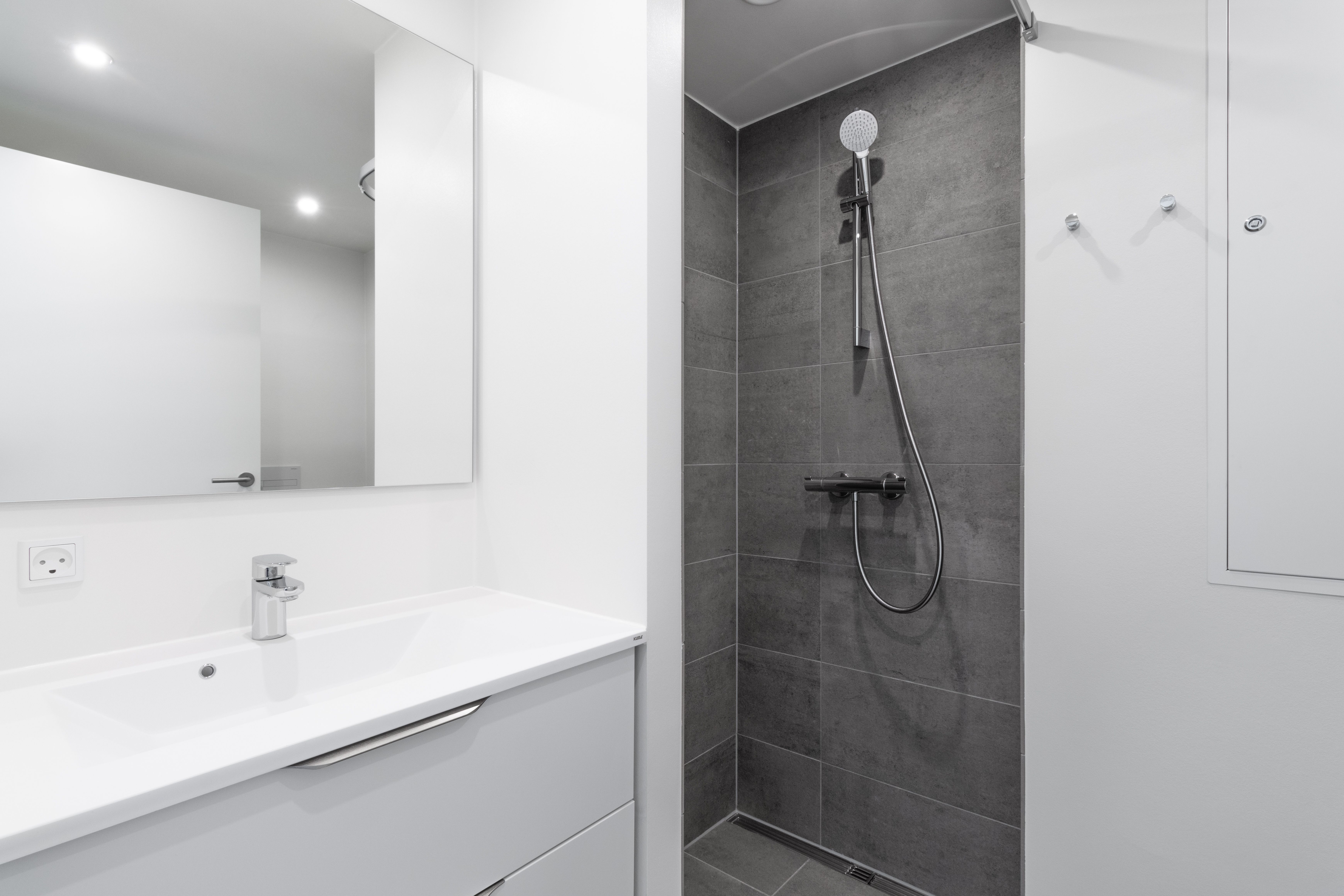 Køkken og stue Boligen har et åbent og funktionelt køkken-alrum, hvor køkkenet er placeret langs væggen og integreret naturligt i opholdsrummet. Det moderne HTH-køkken har integrerede hvidevarer og giver gode rammer for madlavning og hverdag. Indretningen giver god plads til både spisebord og sofaområde, og fra stuen er der direkte adgang til terrassen. Værelser Boligen rummer ét stort soveværelse med god plads til dobbeltseng og indbygget garderobeløsning. Badeværelse Badeværelset er udført i moderne materialer og indeholder bruseniche, toilet og håndvask samt opbevaringsløsning under vasken. Entré Entréen byder på en rummelig ankomst med plads til opbevaring af jakker og sko. Vaskemaskine og tørretumbler er allerede installeret i boligen. Uderum Boligen har en privat terrasse med plads til havemøbler, krukker og udeliv. Foran boligen findes et privat skur samt et flisebelagt areal, der kan bruges til fx cykler eller et lille cafébord. Obs. Alle tekster, billeder og plantegninger er vejledende. Vi udlejer nybyggede etplans rækkehuse på Elisesvej og Langagerhave i Vonsild 6000 Kolding 2-5 værelses boliger. Alt udlejes efter først til mølle princip. Hvis du vil sikre dig et hus med god placering, kan du oprette en kontrakt nu, kontrakten kan opsiges indtil tre mdr. + løbende mdr. inden indflytning. Det er desværre ikke muligt at fremvise endnu, grundet sikkerhed på byggepladsen. Fælles for alle vores lejemål 🏡 : 1. Gulvvarme og ventilationsanlæg 2. Lyst og tidløst HTH-inventar 3. Slidstærke egetræslaminatgulve 4. Fuld hvidevarer pakke 5. Egen terrasse på begge sider af huset 6. Husdyr tilladt efter aftale 7. Adgang til grønne fællesarealer 8. Fibernet med valgfri udbyder 9. Gode parkeringsforhold 10. Ved boliger med egen parkering, er forberedt til el-ladestander 11. På fælles Parkering er el-ladestandere til el-biler