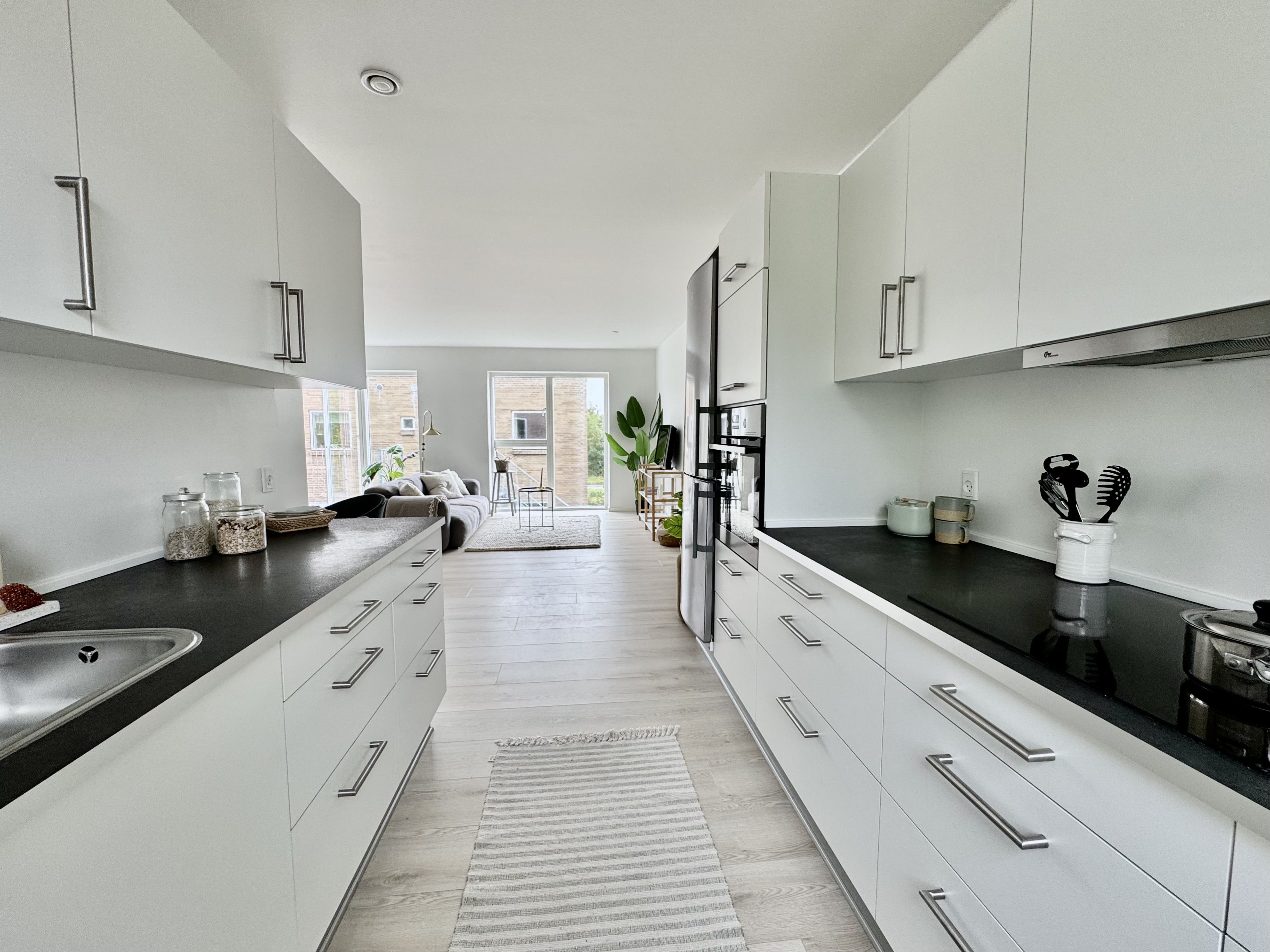 Du fรฅr alt i hรฅrde hvidevarer, herunder ogsรฅ opvaskemaskine, vaskemaskine og tรธrretumbler. Der er gulvvarme i hele boligen.