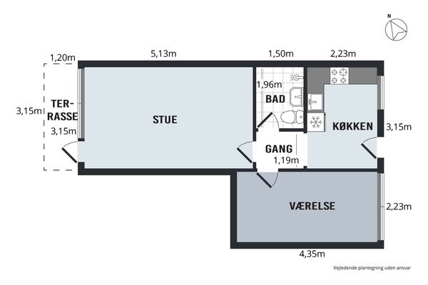 2 vær. rækkehus på 51 m²