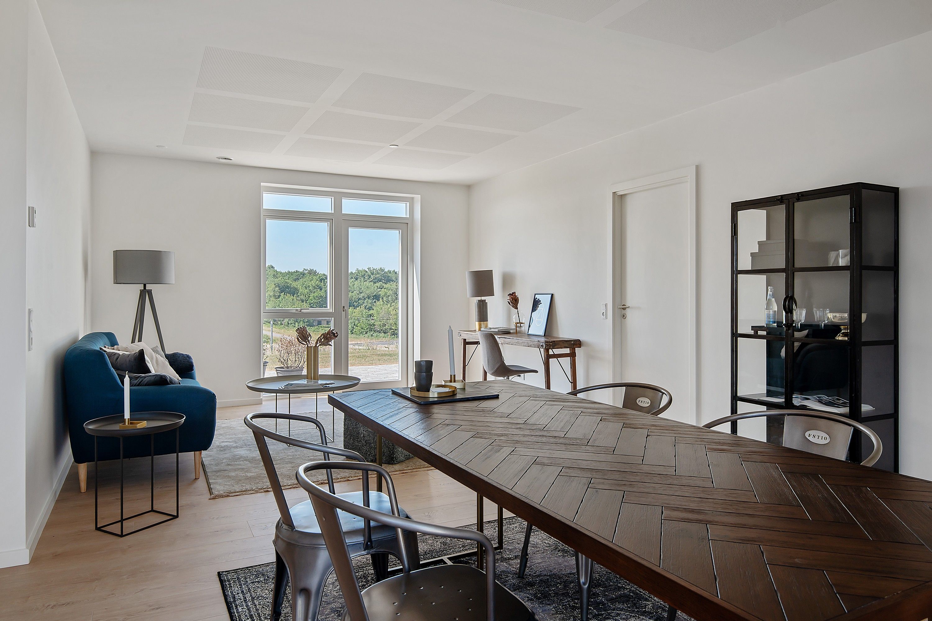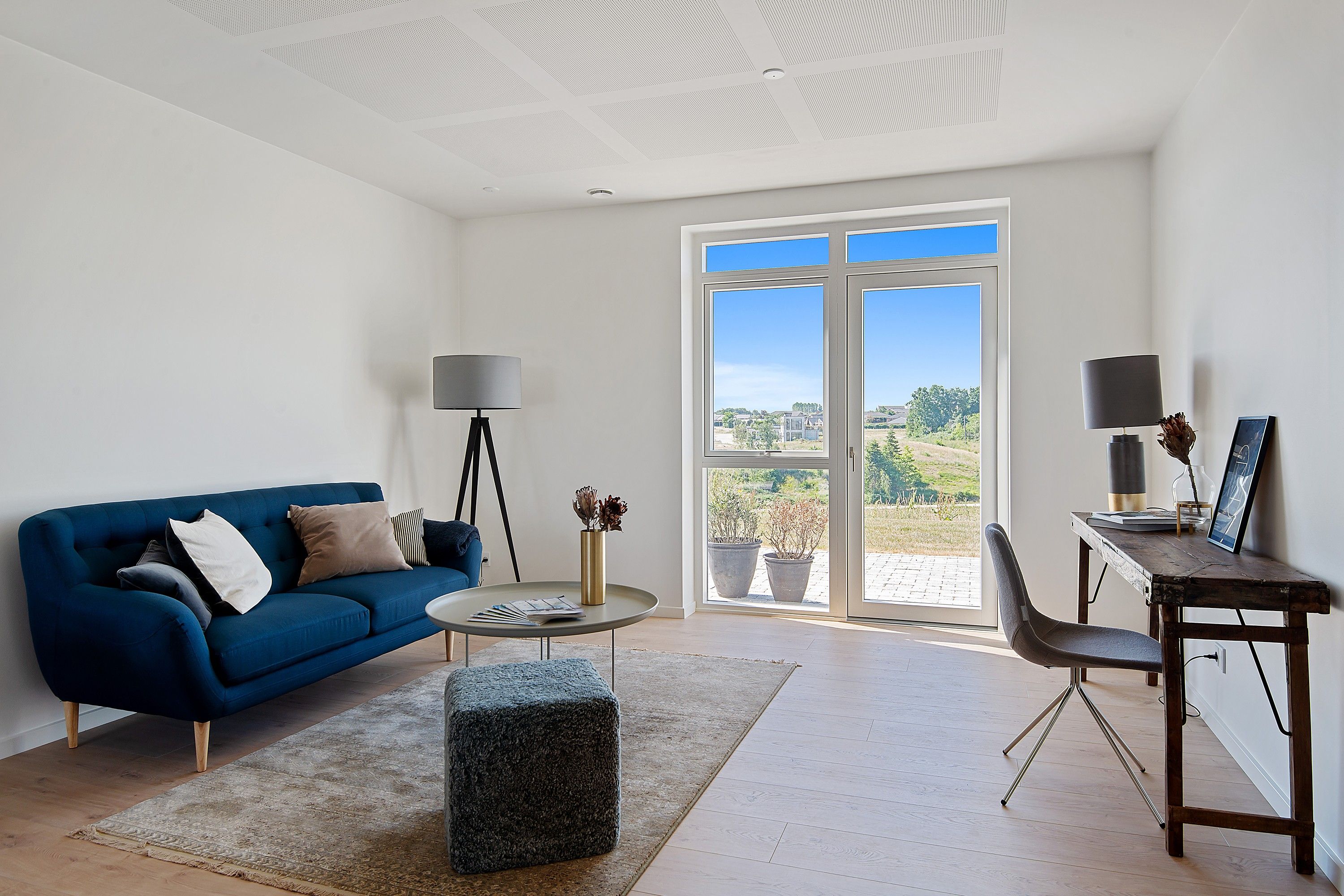 Rækkehusene har Troldtekt i loftet, som bidrager til en perfekt akustik og bakke op om den rolige atmosfære. Vådrummene er dækket af store, flotte fliser af ekstra hårdhed, som gør det supernemt at vedligeholde og rengøre, der skal bare bruges lidt vand og sæbe. Det passer perfekt i en travl hverdag.