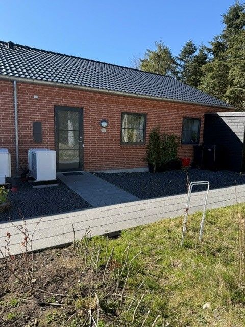 2 badeværelser, egen terrasse, redkabsskur, parkering med ladestander. Med rolig og alligevel meget bynær beliggenhed, udlejes rækkehus opført i 2023. Rækkehuset er i to plan. Indretningen er som følger: Entre, brusebadeværelse, køkken og stor stue. Fra stuen er der adgang til egen fliseterrasse. På 1 sal er der repos, 3 gode værelser, endnu et badeværelse, samt et depotrum. Der medfølger fuld hårde hvidevarepakke med opvaskemaskine, komfur, emhætte, køle-/ fryseskab, vaskemaskine og tørretumbler. Udenfor er der tillige et depotrum. Rækkehuset overtages nyistandsat og skal afleveres i samme gode stand. Der er adgang til parkering med ladestander, Der er et fælles haveareal. Det er tilladt at holde et stk mindre husdyr, efter nærmere aftale. Et meget attraktivt lejemål som skal ses.