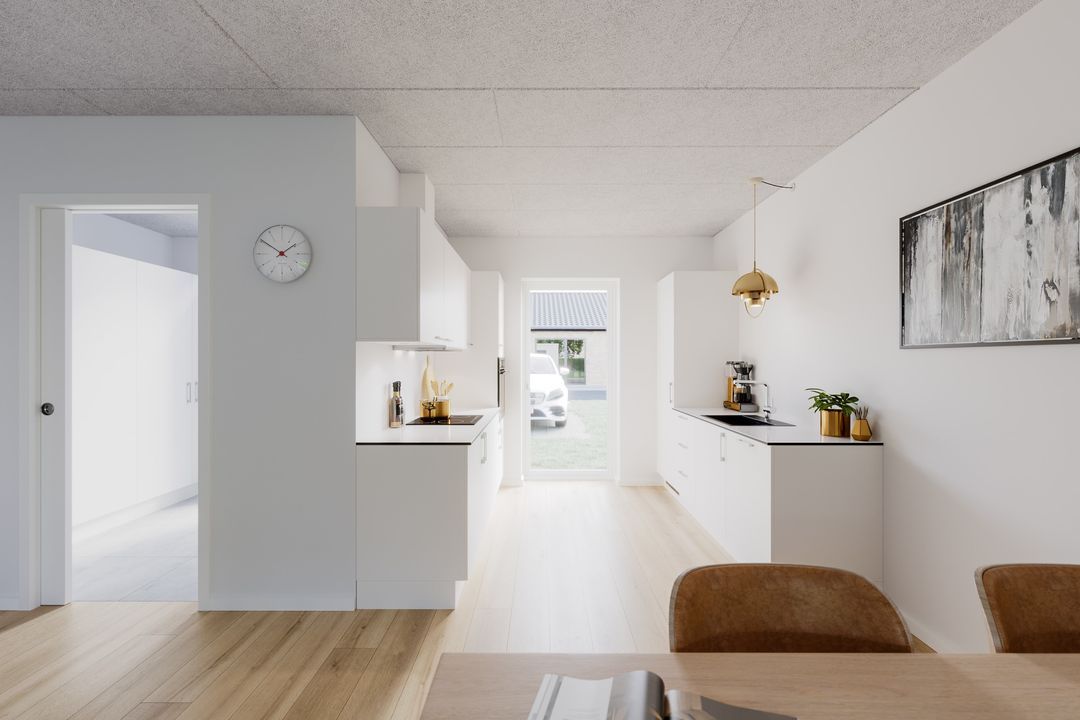Velkommen til Gymnasiebakken – et nyt boligområde i Tørring. Gymnasiebakken tilbyder en række forskellige boliger fra 70 til 96 m². Der er 3 værelses på 70 og 82 m² og 4 værelses på 96 m². De er klar til indflytning fra den 1. august 2026. INDE: Rækkehuset her består af et lyst køkken/alrum og stue i ét med udgang til egen terrasse. Derudover er boligen udstyret med entre, et dejligt badeværelse, samt to soveværelser. Boligerne varmes op med gulvvarme. PARKERING: Hvert rækkehus har to p-pladser foran boligen og et skur på 7 m². Der er klargjort til ladestander ved hver bolig.