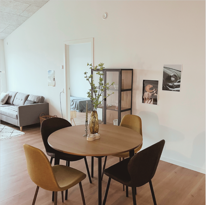 Stue 🛋️🌞 – En lys og hyggelig stue i forbindelse med køkkenet, der inviterer til afslapning og samvær med venner og familie.