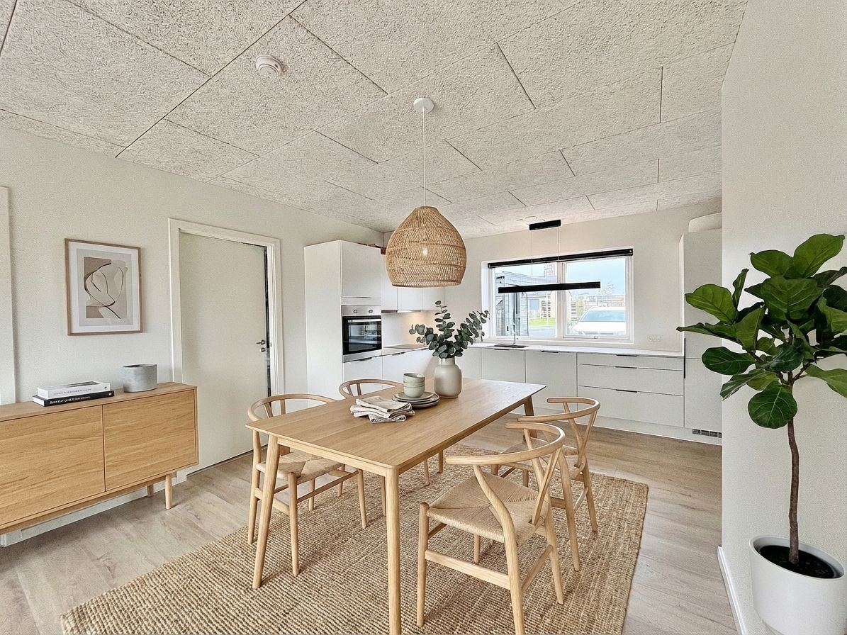 Rækkehuset byder på 91 m² veludnyttet bolig fordelt på 3 værelser og er indrettet med fokus på en praktisk og moderne hverdag. Boligens hjerte er et lyst opholdsmiljø, hvor køkken og stue er samlet i en åben og indbydende løsning. Her skaber de store vinduespartier et naturligt lysindfald, som giver rummet en let og venlig atmosfære. De to værelser giver fleksibilitet i indretningen og kan bruges som soveværelse, børneværelse, gæsteværelse eller kontor – alt efter behov og livssituation. Udendørs får du stor sydvendt privat have, som giver mulighed for afslapning og udeliv i rolige omgivelser tæt på hjemmet. Alt i alt et moderne rækkehus, der kombinerer overskuelig størrelse med en funktionel planløsning og en rolig beliggenhed. Husdyr kan tillades efter aftale med udlejer.