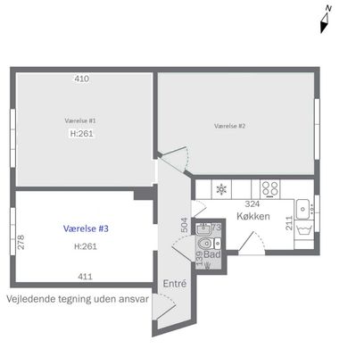 Værelset er et dejligt lyst værelse på ca. 11 kvm med fransk altan. Det er værelse nr. 2 på plantegningen, der er ledigt.