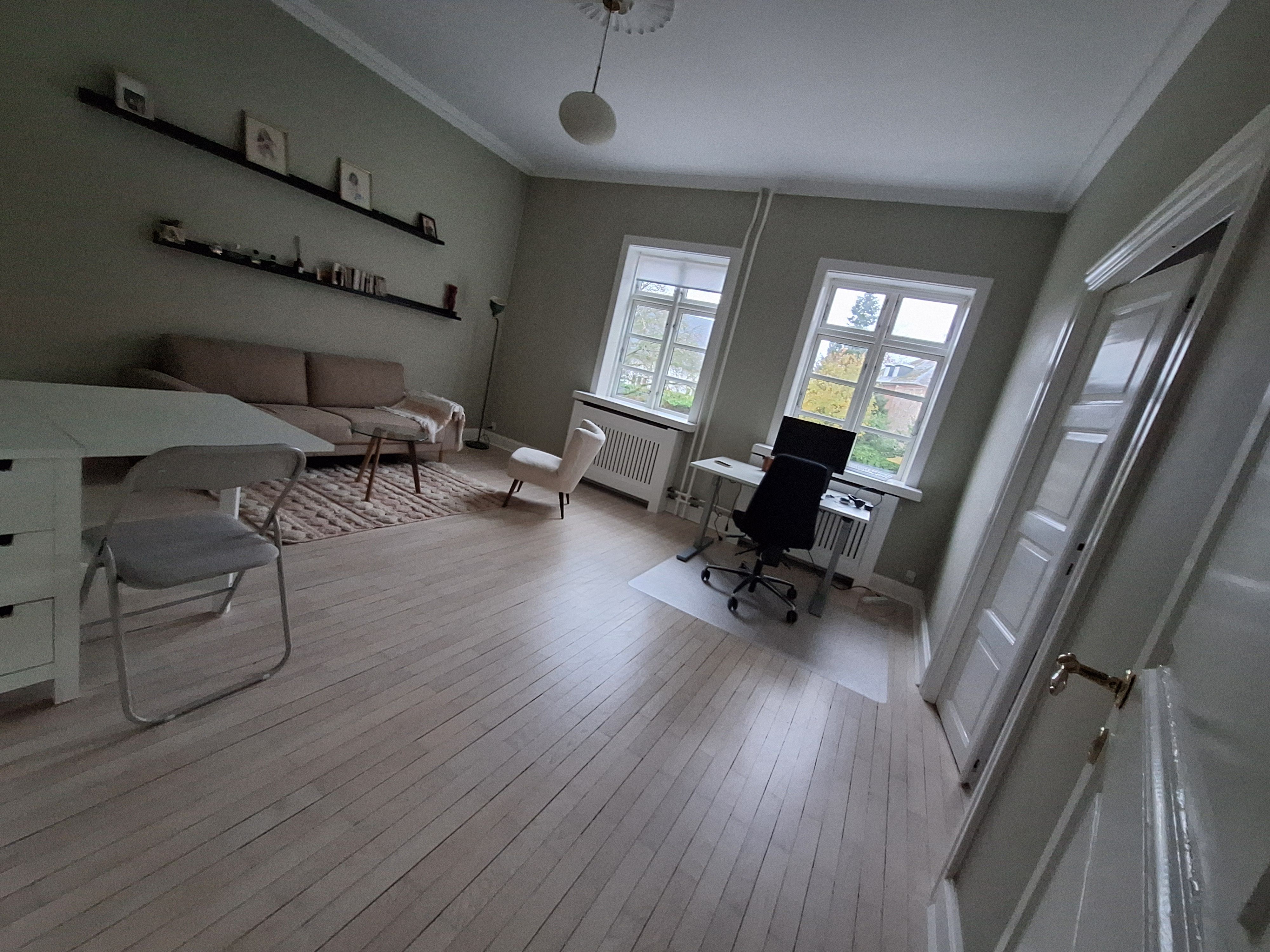 Lækkert værelse i en lejlighed på 127 kvm. Adgang til fælles køkken, spisestue og badeværelse. 5 min gang til indkøb, restauranter og s-tog st. Østerport. 5 min gang til Kastellet, naturen og Nordhavn hvor der er rig mulighed for at bade.
