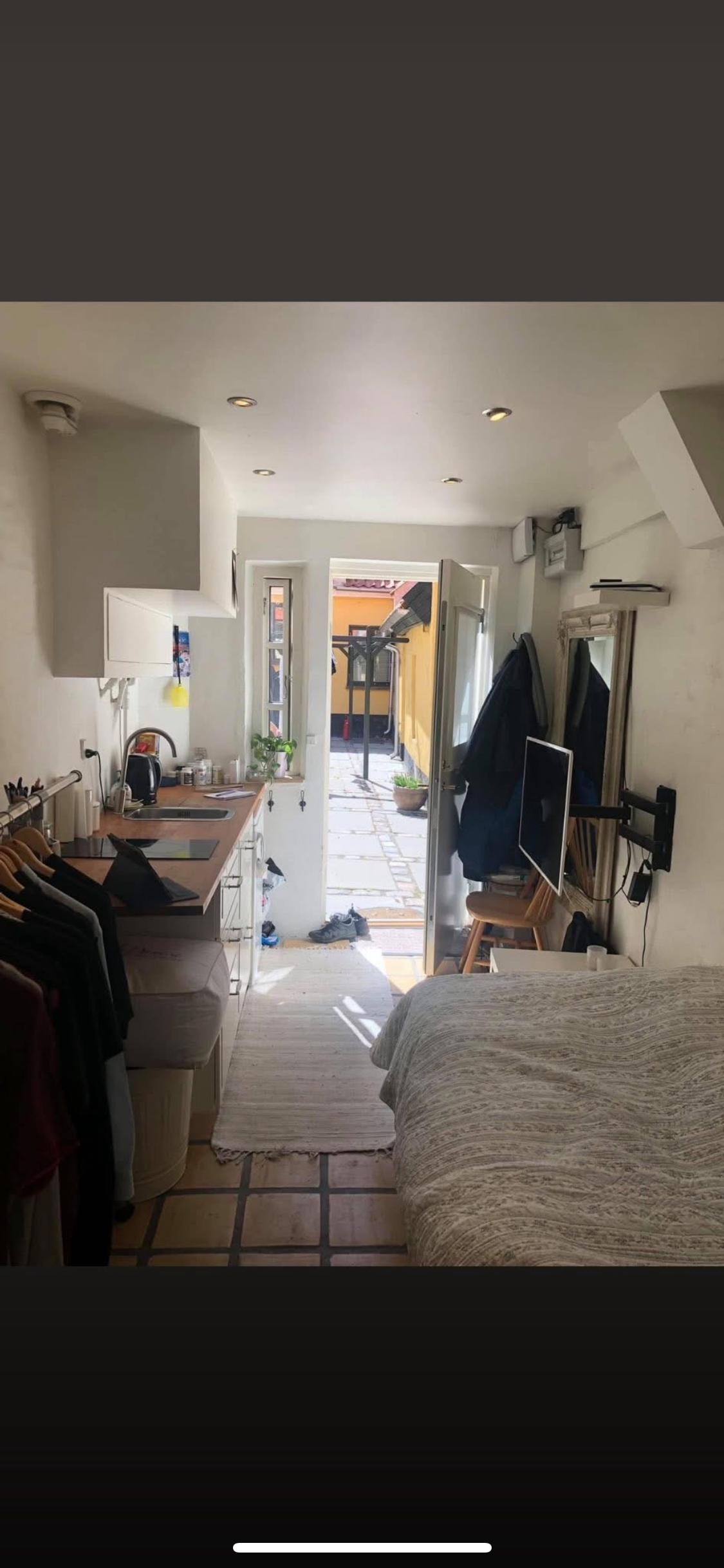 The room is bright and cozy, perfect for an individual or a couple looking for a private space while sharing the home’s common areas, such as the kitchen and bathroom, with other residents.