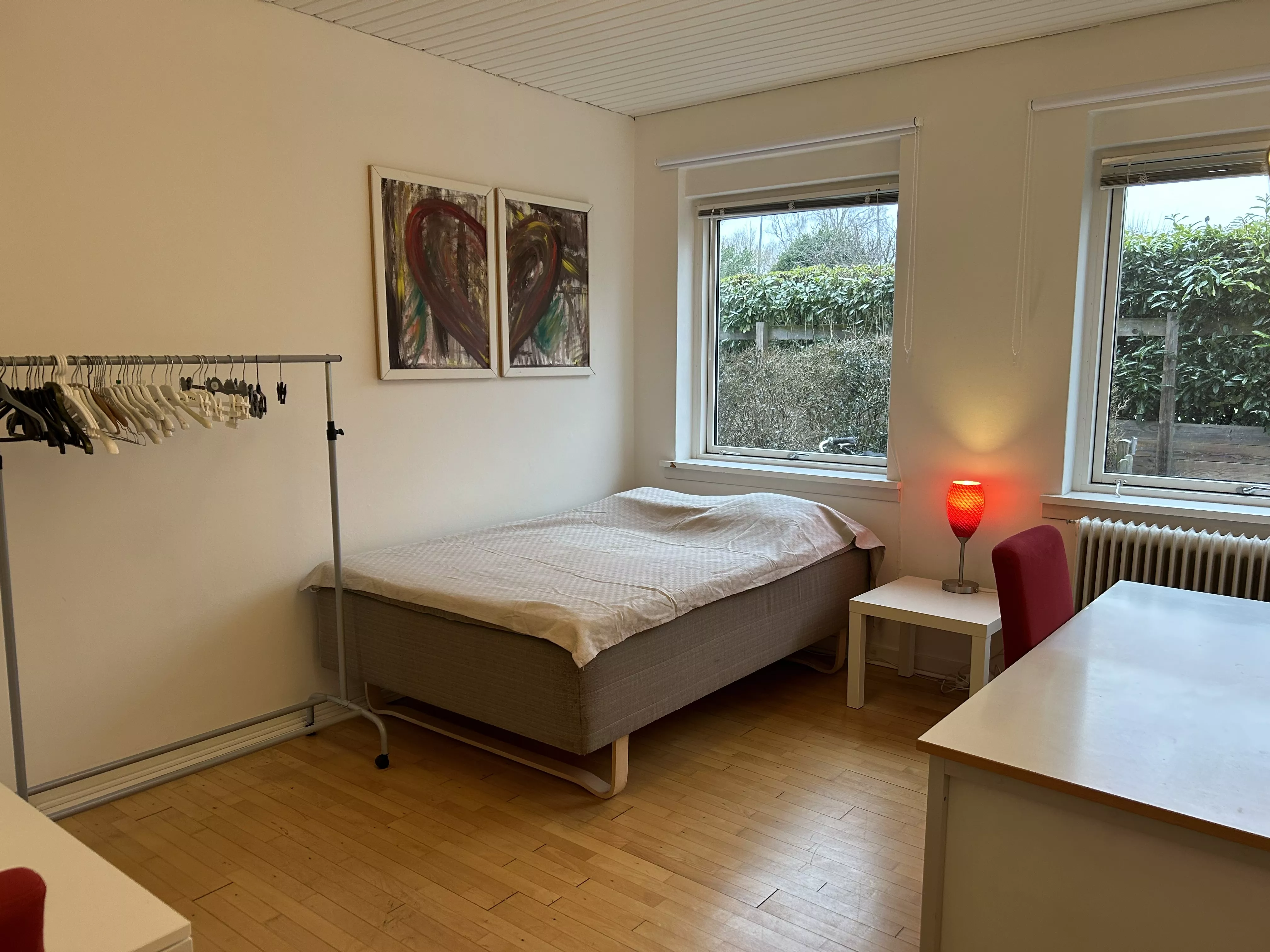 Alle værelserne er ca. 12-14 m2 og indeholder vaskeskab, klædeskab og køle/fryseskab.