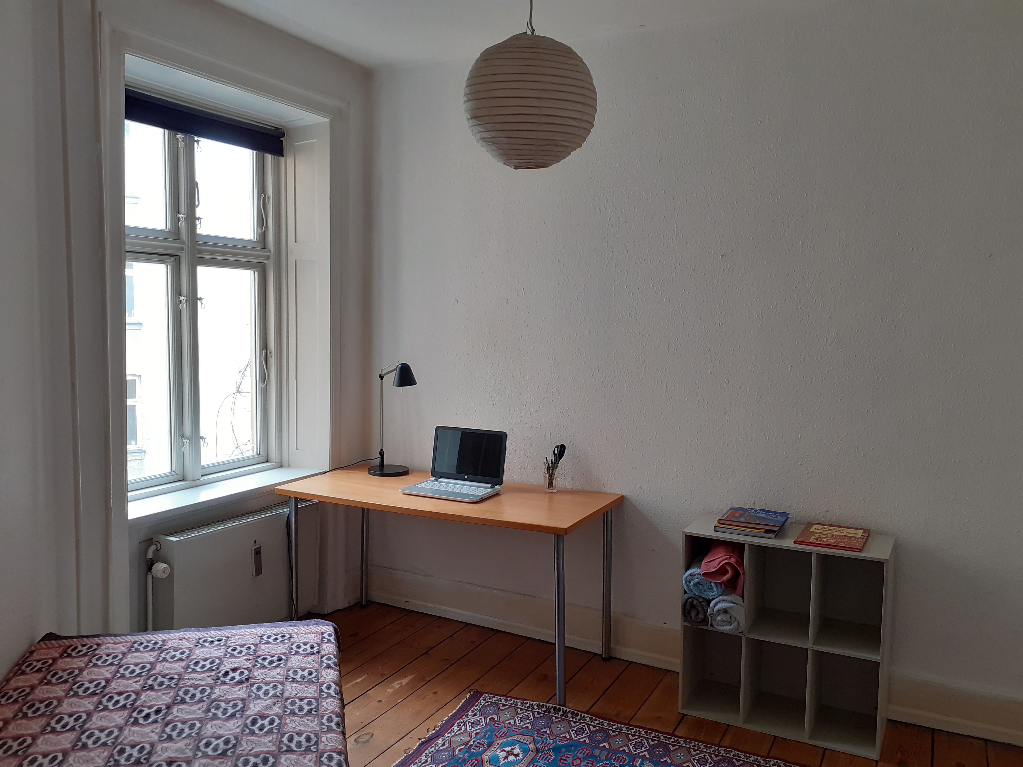 Lyst og hyggeligt værelse med højt til loftet -15 m2 i stor lejlighed på indre Østerbro. Udlejes til 1 person fra 1 mar 2026. For 1 år med mulighed for forlængelse. Lejligheden er på 145 kvm og vi er 3 andre voksne beboere. Fælles bad og køkken. A/c forbrug indbefatter centralvarme, vand, el, gas, vaskemaskine og internet. Stille hyggelig grøn gade, nær søerne og tæt på Langelinie. Gårdmiljø, cykelkælder og 10 min gåafstand til Østerport station med nærmeste Metro og 5 minutter fra Nordre Frihavnsgade og Østerbrogade med caféer og gode indkøbs-muligheder. ------- Bright and cozy room (high ceiling) - 15 m2 in a large apartment in inner Østerbro. To be rented to 1 person from 1 mar 2026. Large flat 145 m2 shared with 3 other grown ups. The utilities/ aconto covers monthly central heating, water, electricity, gastove, washing machine and internet. 1 year with the possibility of extension. Quiet cozy green street, near the lakes and close to Langelinie. 10 min walking distance to Østerport station with the nearest Metro and 5 minutes from Nordre Frihavnsgade and Østerbrogade with cafes and good shopping facilities. A lovely area in Copenhagen close to the lakes and several parks and cultural facilities.