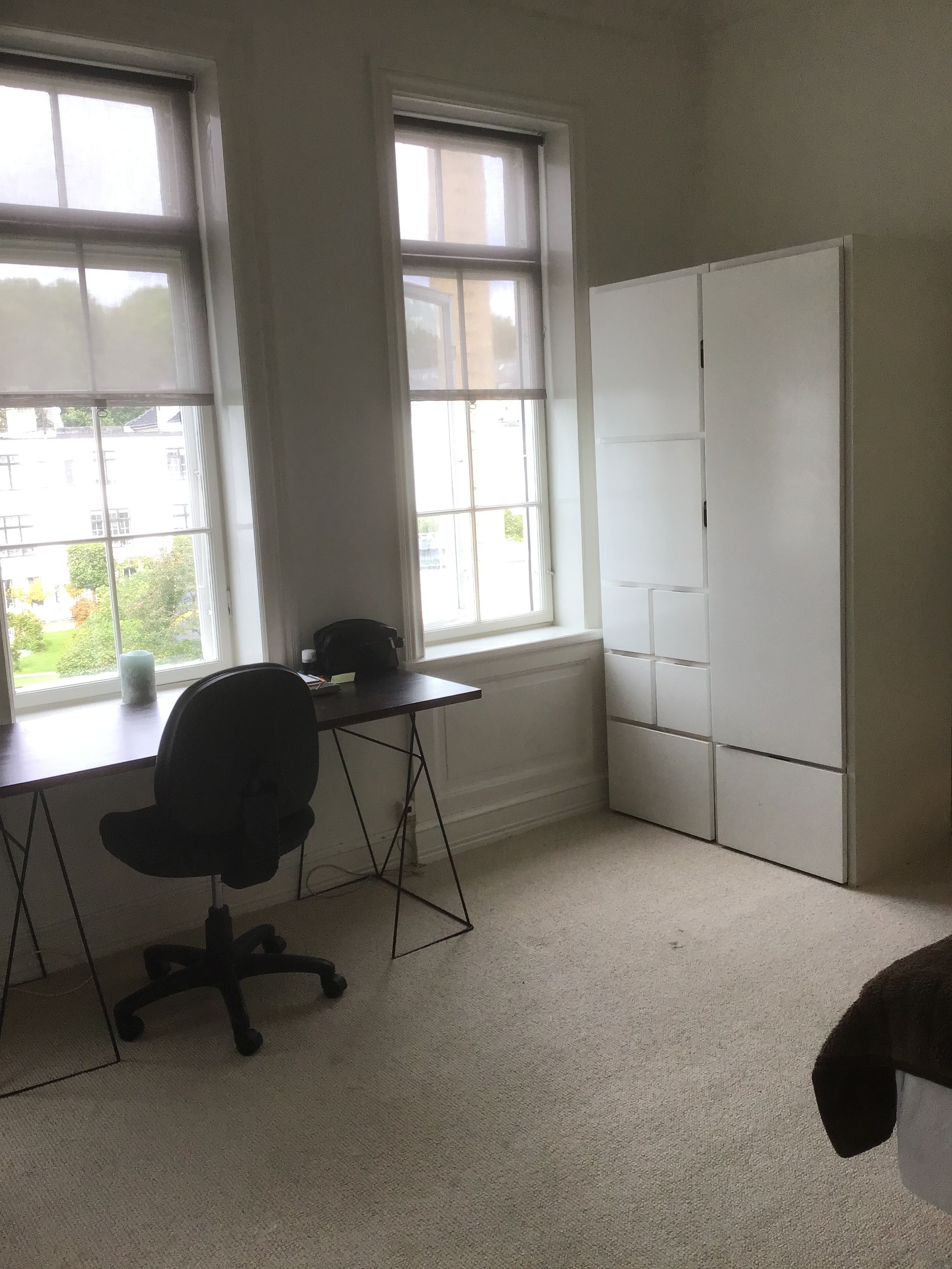 Udlejer værelse , i lejligheden Værelset er c.a 10 m2 , herudover er der adgang til stor stue, altan, bad / toilet og køkken. Der kan ryges på altan men ikke indenfor. Gensidig opsigelses varsel en måned. Lejemålet overtages rengjort, kan lejes med seng 140x180 samt hæve sænke skrivebord, der er fast tøjskab. Med møbler 7250,- uden som annonceret 7.000 Tæt på metro, strand, indkøb, restauranter, cafeer m.v.