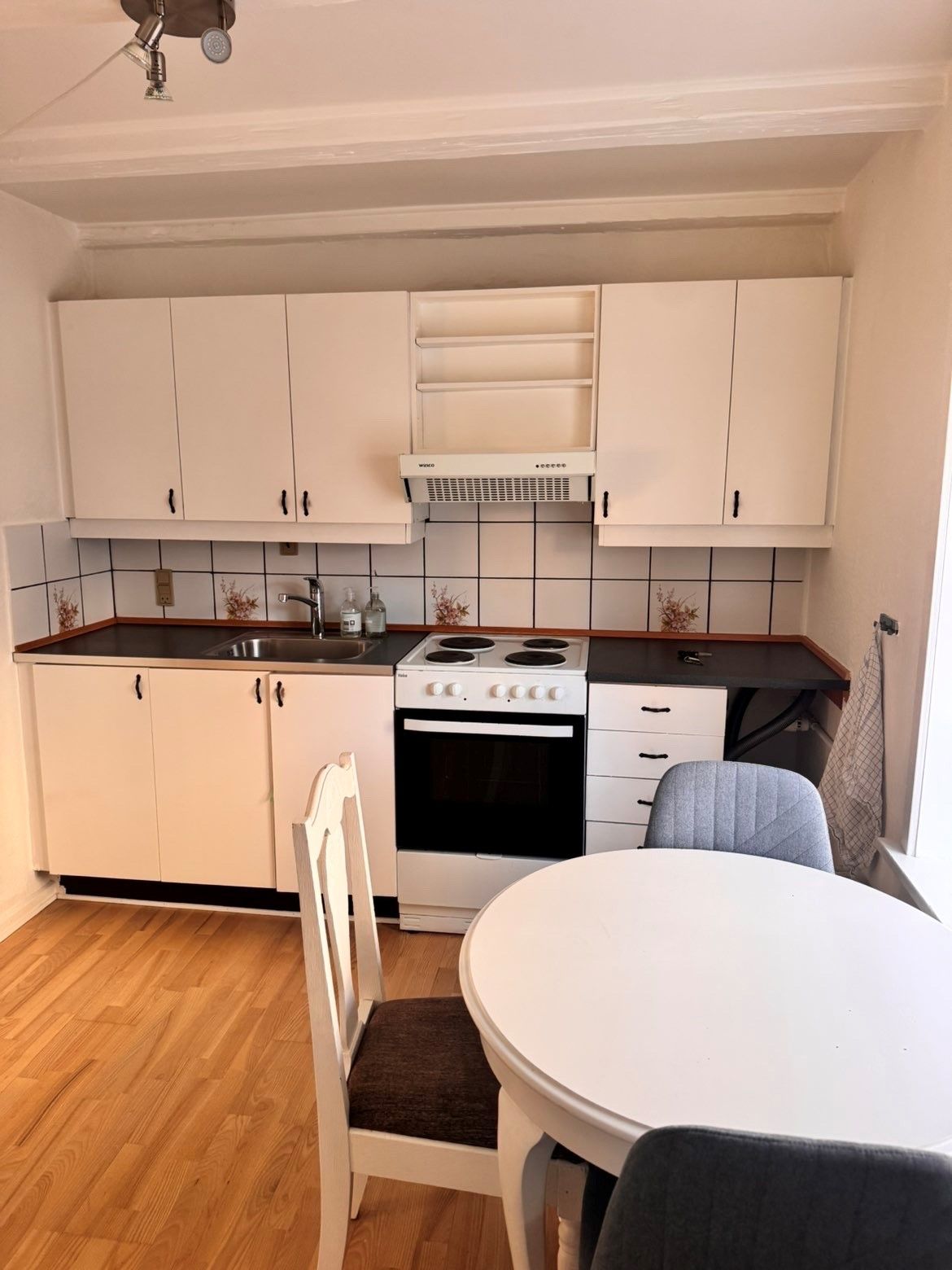 Der er køle-/fryseskab, indbygningsovn, 2-zoners induktionskogeplader og emhætte i lejlighederne. Vaskemaskine og tørretumbler findes i kælderen.